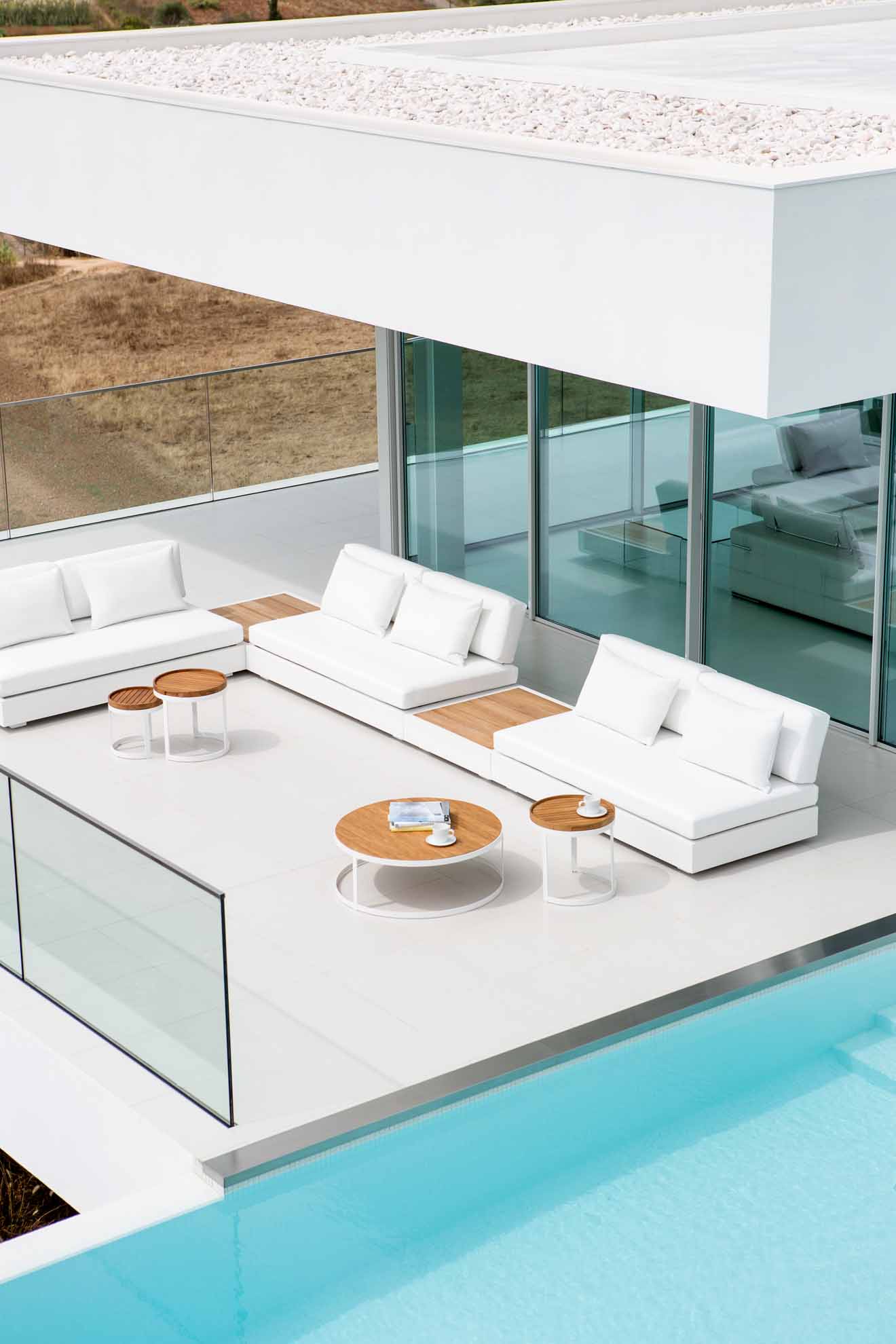 Set Bari Lounge Modul Ecke, Tucino Kaffeetisch, Kissen Agora® panama gris porcelana