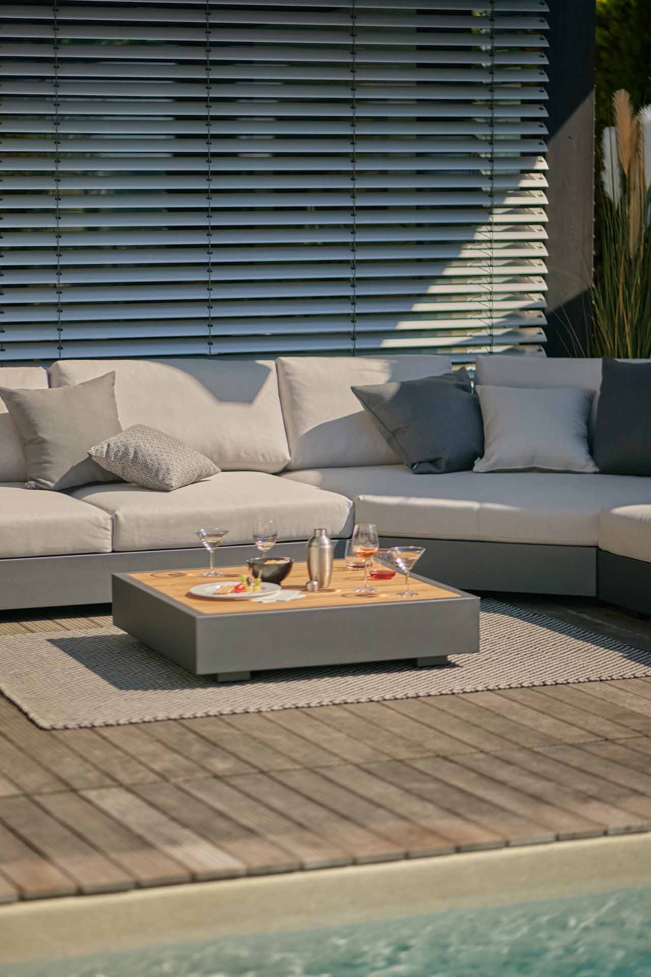 Bari Lounge Kaffeetisch 90x90cm, eisengrau/Teak