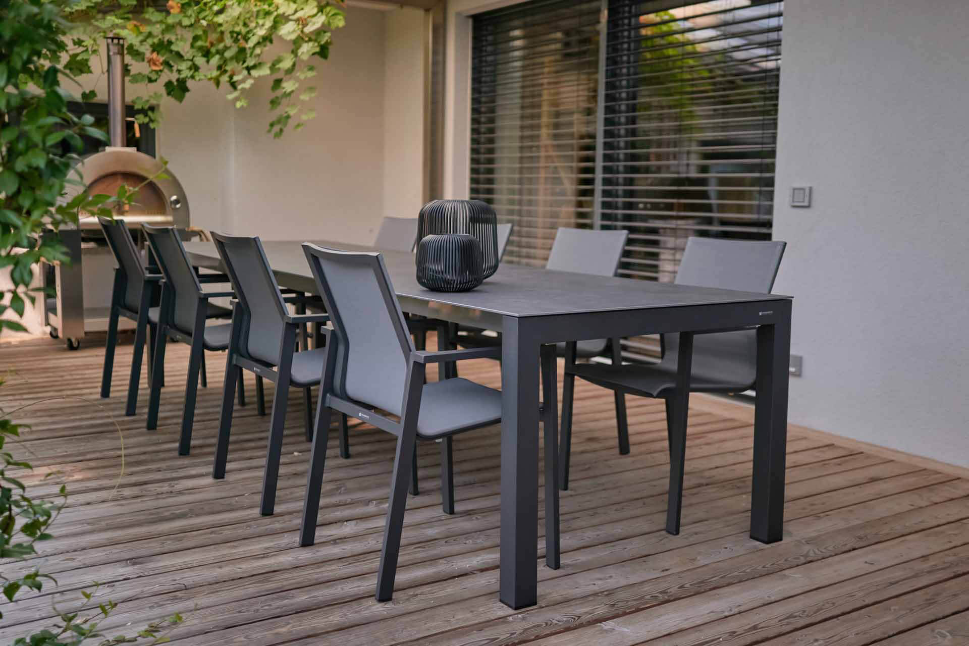 Textilen-Gewebe werden für die Sitz- und Rückenbespannung zahlreicher Gartenmöbel verwendet. Dieses Gewebe wirkt leicht und transparent und ist viel komfortabler als z.B. massive Latten. Außerdem trägt es auch dazu bei, dass die Möbel leichter und handlicher sind. Textilen-Bespannungen haben eine sehr hohe Tragkraft. Sie sind robust, UV-beständig und pflegeleicht.