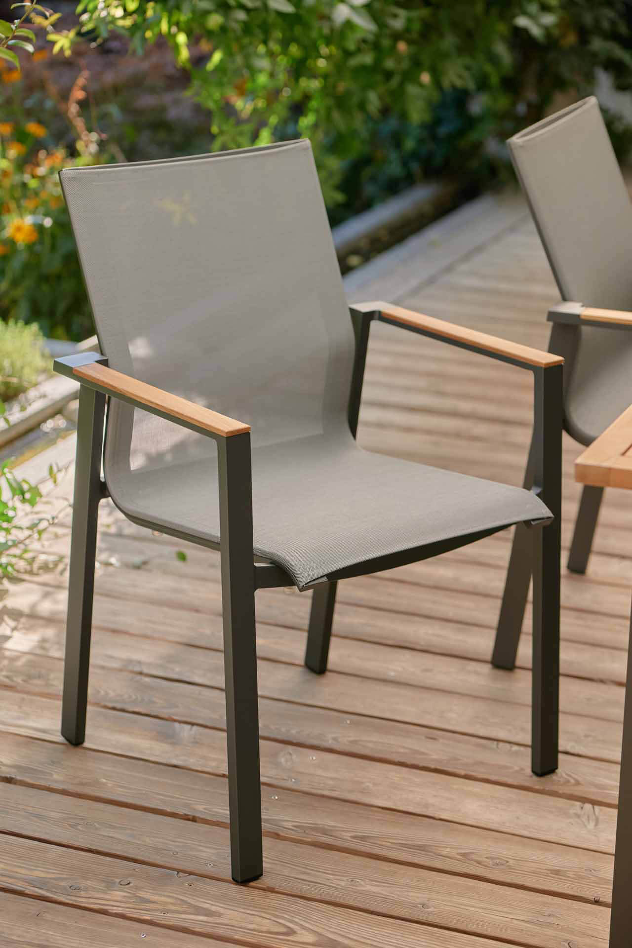 Produktinformationen "Beja Stapelsessel eisengrau/silbergrau, Armlehne Teak"