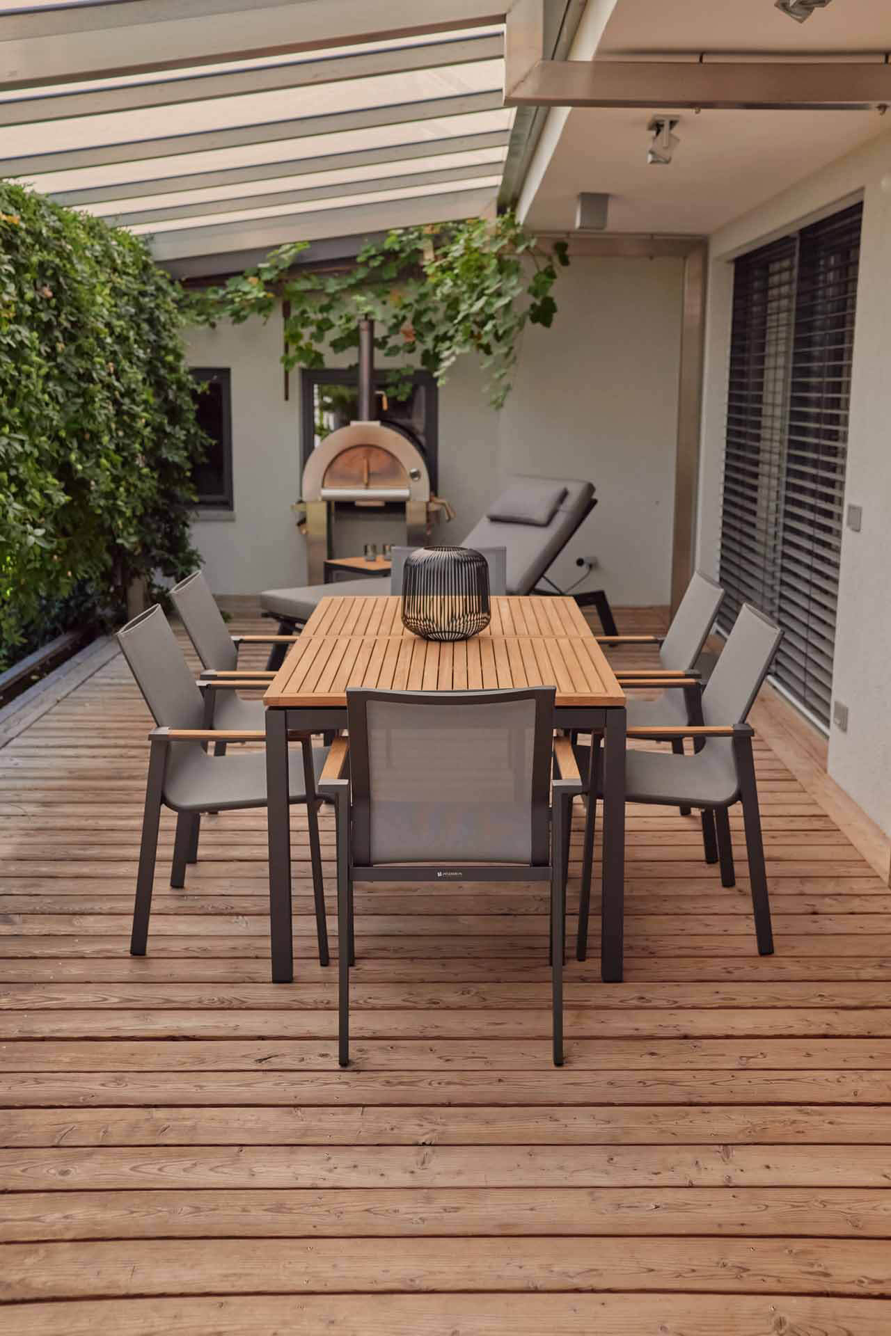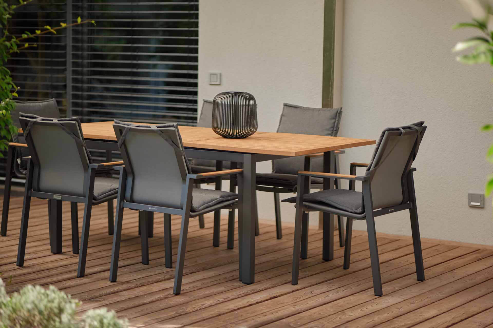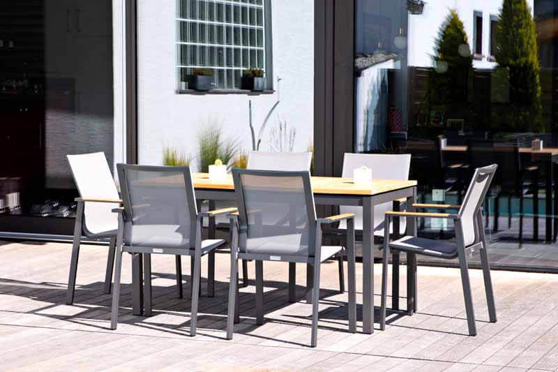 Wir verwenden ausschließlich Teakholz aus kontrolliertem Anbau. Teakholz gehört zu den wertvollsten Nutzhölzern der Welt. Ein hoher Kautschukgehalt bewirkt unter anderem eine starke Wasserabweisung. Das Holz widersteht nicht nur problemlos Nässe, Sonne, Frost und Temperaturschwankungen, sondern besitzt auch eine hohe Resistenz gegen Ungeziefer und Insekten. Teakholz ist zum Dauereinsatz im Freien besonders geeignet. Die meisten Teakmöbel werden naturbelassen geliefert. Im Laufe der Zeit bekommt das Holz durch Witterungseinflüsse eine silbergraue Patina.