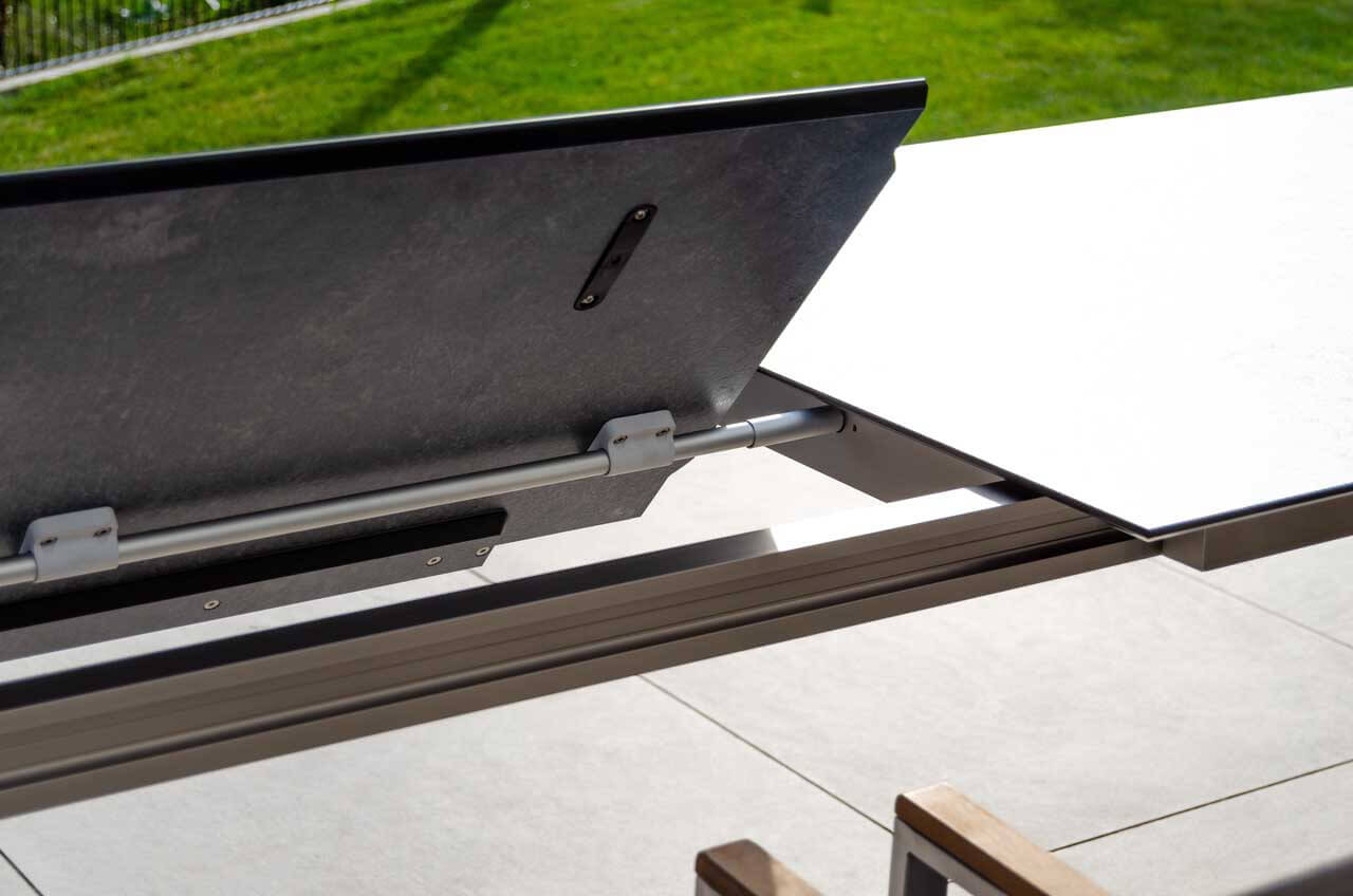 Bologna Ausziehtisch 220/320x95cm, weiß/HPL zement grau