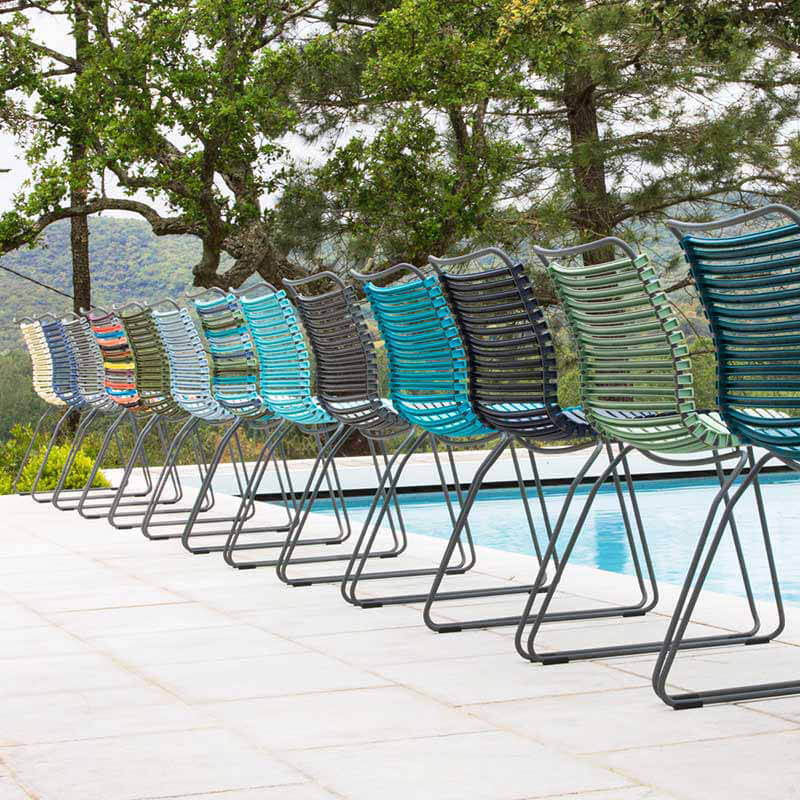 Der filigran wirkende CLICK Stapelsessel von HOUE hat ein stabiles Stahlgestell. Mit den ergonomisch geformten Kunststofflamellen bietet dieser Stuhl ein angenehmes, komfortables Sitzgefühl. Die Armlehnen aus Bambus mit der natürlichen Haptik sorgen für einen zusätzlichen Wohlfühlfaktor. Alle Lamellen sind austauschbar und können je nach Ihrem persönlichen Geschmack farblich gewechselt oder gemischt werden. Mit den CLICK Stapelsesseln wird jeder Esstisch zu einem aussergewöhnlichen Arrangement. Gestell: Stahl, pulverbeschichtet grau Lamellenfarbe: 83 multi 1 Artikel Nr.: 10801-8318
