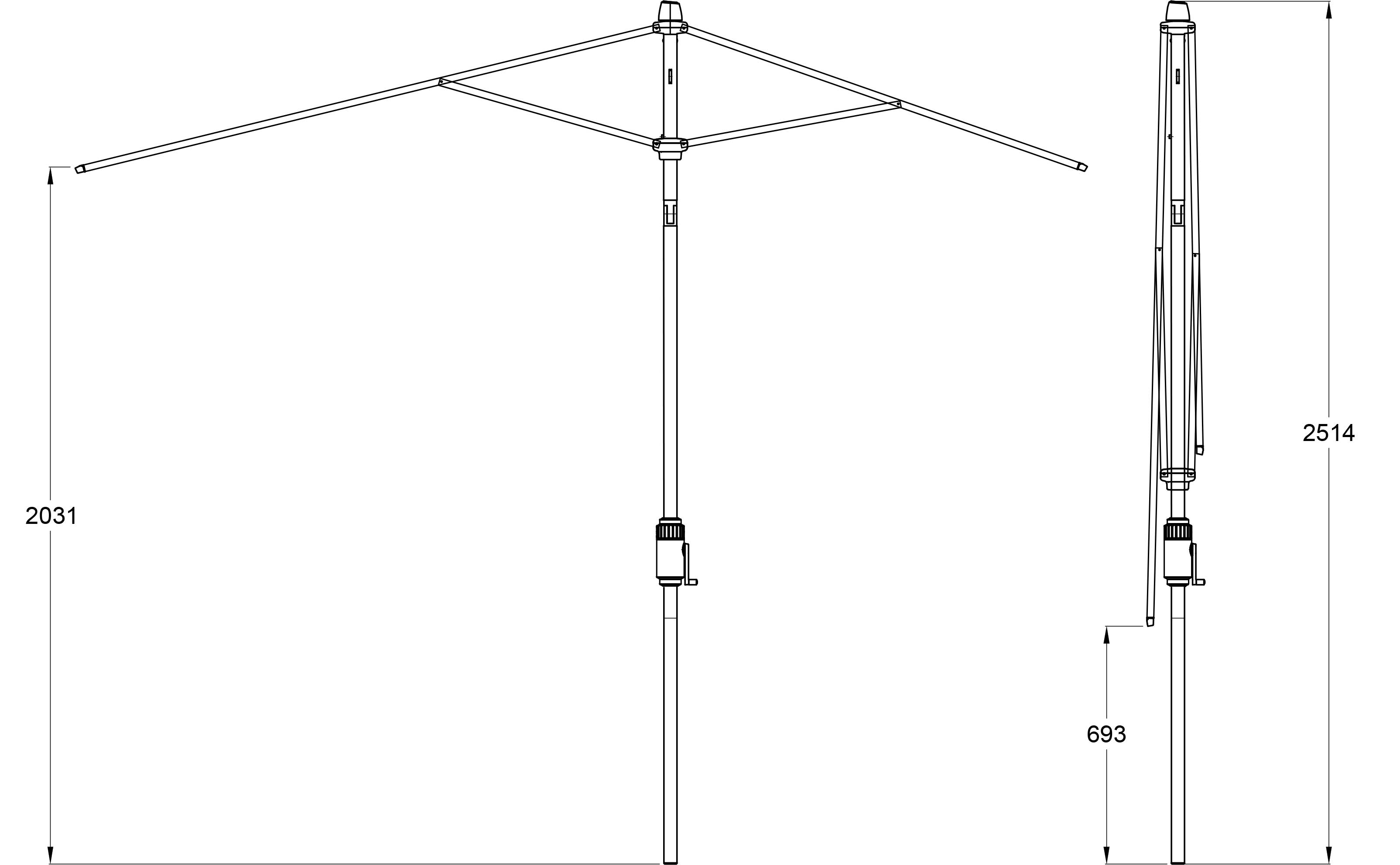 UNO: eloxirtes Aluminium, Streben 14×20 mm, selbstspannende Strebenenden für ein dauerhaft straffes Schirmdach.