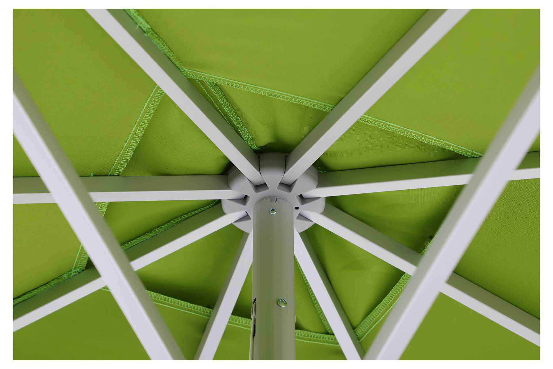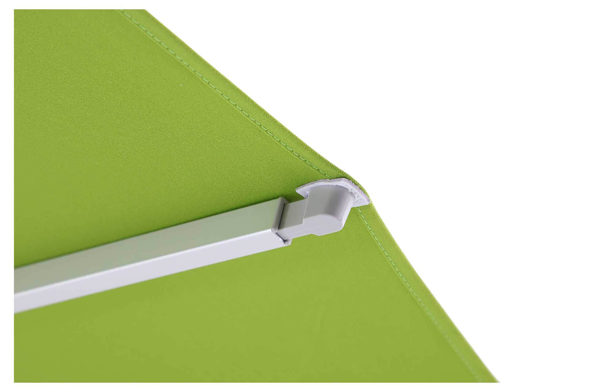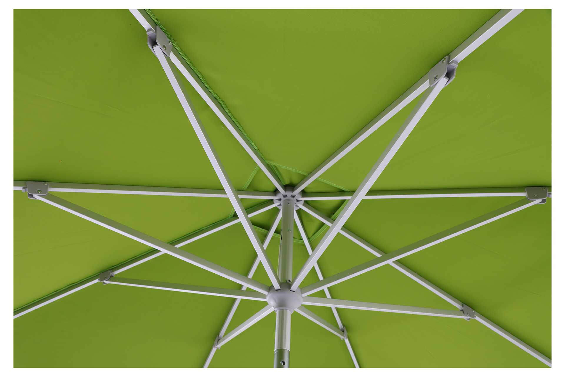 • UNO: eloxirtes Aluminium, Streben 14×20 mm, selbstspannende Strebenenden für ein dauerhaft straffes Schirmdach.