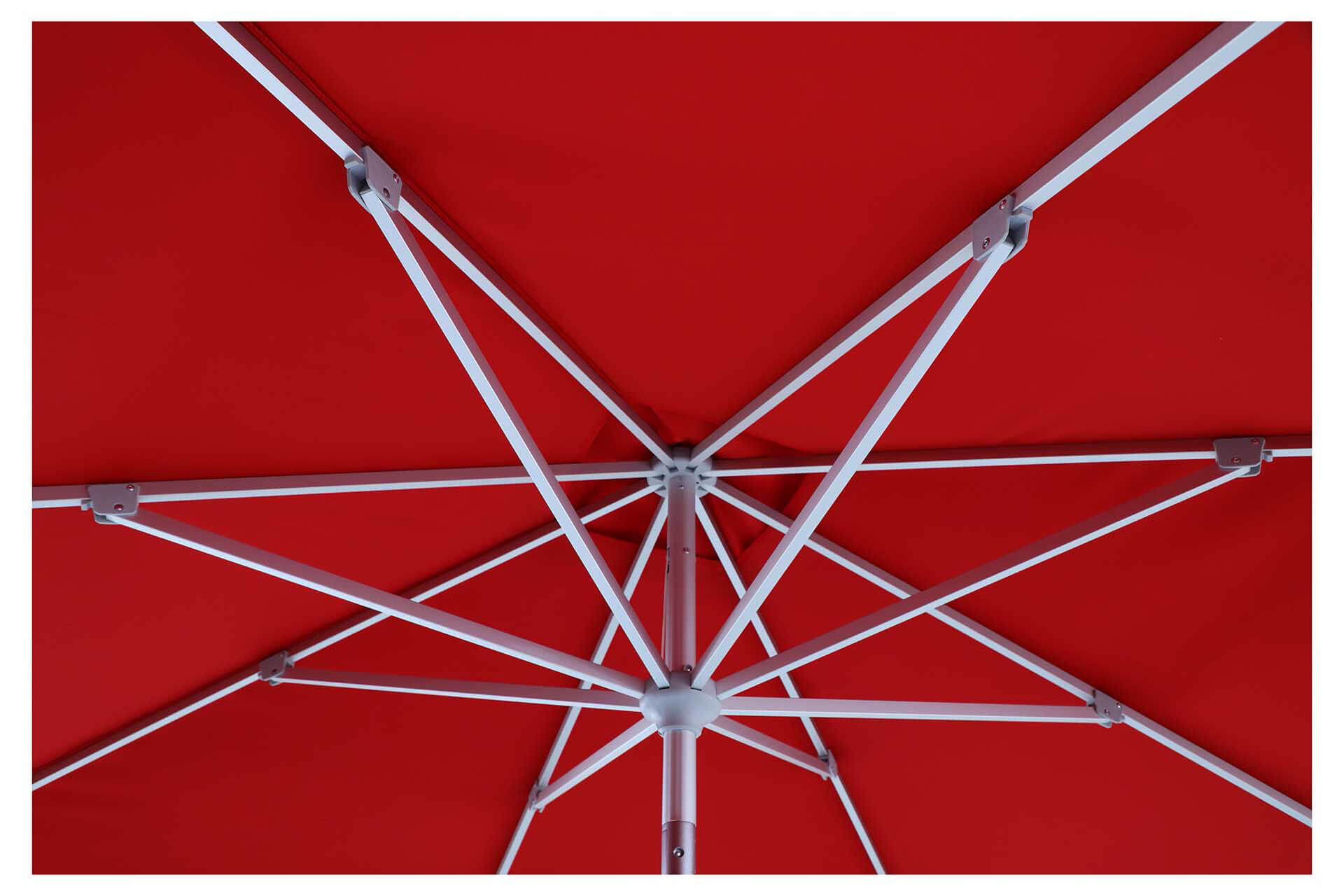 UNO: eloxirtes Aluminium, Streben 14×20 mm, selbstspannende Strebenenden für ein dauerhaft straffes Schirmdach.