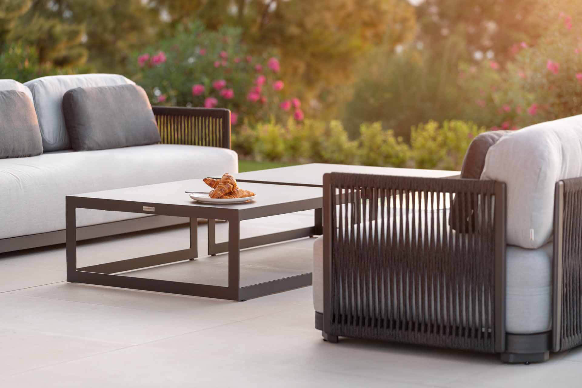Seilmöbel - Qualitätsfasern mit natürlichem Aussehen. Die Polyolefinfaser hat ein natürliches Aussehen, ist jedoch pflegeleicht und unempfindlich gegen die Kräfte von Mutter Natur. Das Seil ist sowohl für den Innen- als auch für den Außenbereich geeignet. Wie keine andere synthetische oder natürliche Faser ist sie resistent gegen Pilze, Bakterien, Sonnenlicht, Feuchtigkeit, Chlor, Lebensmittelflecken und Schweiß. Es ist extrem leicht, waschbar, umweltfreundlich und vollständig recycelbar. Kombinieren Sie die Sitze und Stühle aus Rope-Geflecht mit maßgeschneiderten, wetterbeständigen Kissen.