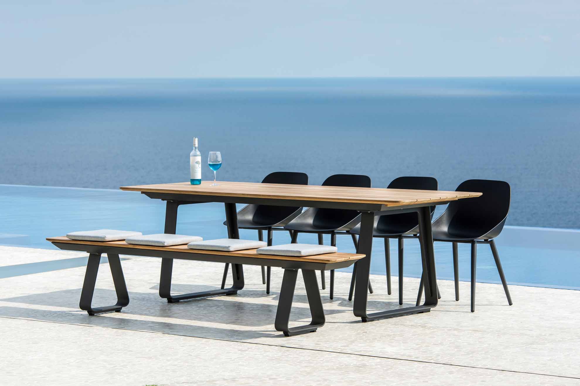 Das Elko Bankgestell in Aluminium eisengrau von Jati&Kebon hat die Maße 240x36 cm und ist kombinierbar mit einer Teakholz Sitzfläche aus unserem Zubehör. Eine Gartenbank ohne Rückenlehne ist minimalistisch und kann von beiden Seiten benutzt werden. Diese Bank passt harmonisch zu den Elko Tischen, kann aber ebenso als Sitzgelegenheit für viele Anlässe in Ihrem Garten platziert werden.