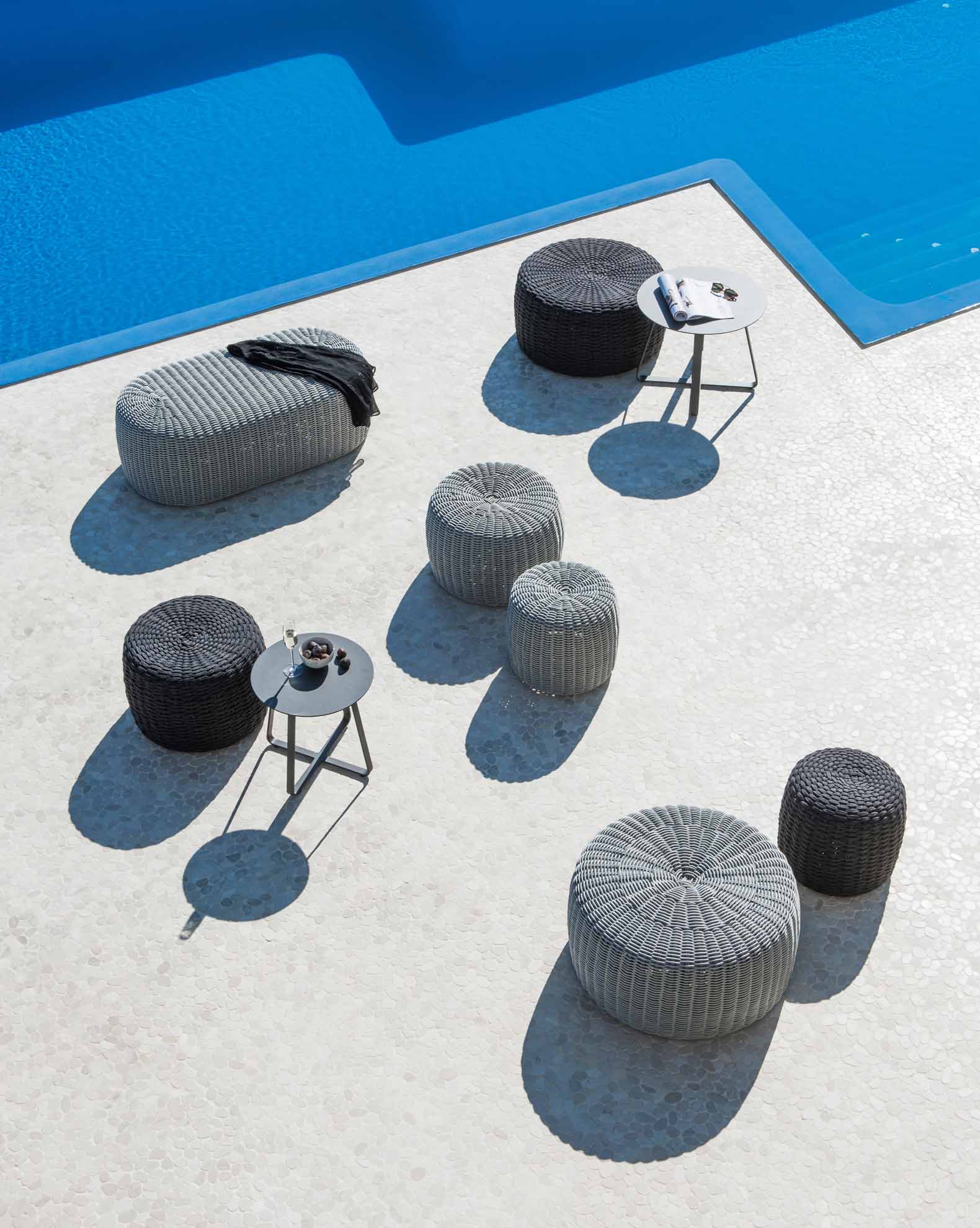 Der runder Beistelltisch Elko von Jati & Kebon hat einen Durchmesser von 45 cm und eine Höhe von 45cm. Das Gestell und die Tischplatte sind aus massivem pulverbeschichtetem Aluminium, in der Farbe Eisengrau matt. Elko-Tische passen sowohl einzeln als handliche Tische neben einen Sessel oder ein Sofa, als auch in einer Kombination aus drei verschiedenen Größen oder einer gemischten Farbgestaltung in schwarz + weiß.