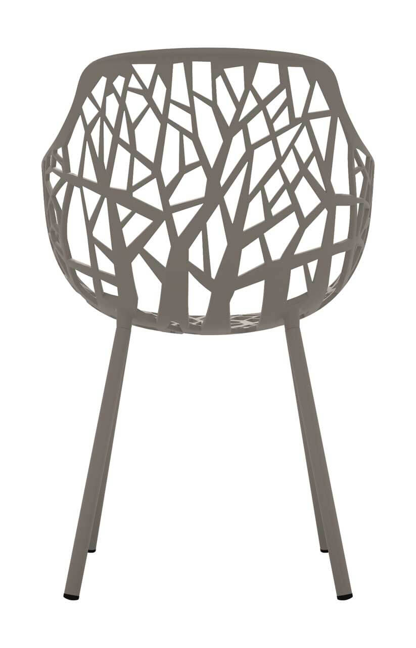 Forest Sessel von Fast bestehen aus druckgegossenem Aluminium sind ein Verweis auf die grafischen Muster, die zwischen Licht und Schatten in der Natur entstehen. Die in mehreren Farben erhältliche Stuhlkollektion ist für den Einsatz im Freien und für gesellige Anlässe gedacht: Drinks, ein Brunch im Freien oder ein gemütliches Abendessen. Forest Stühle sind stapelbar und die Beine sind abschraubbar.