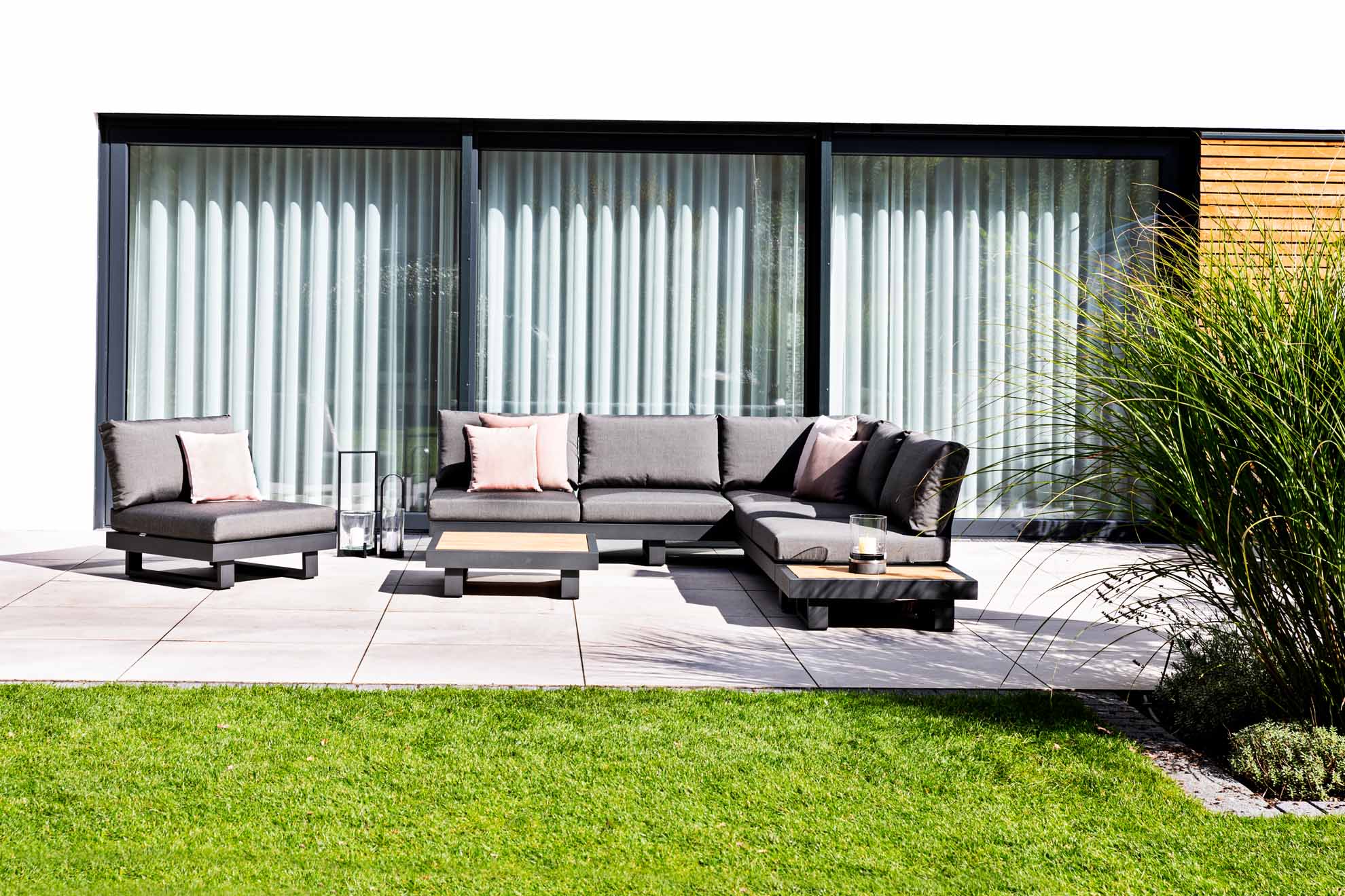 Das Fano XS Lounge System von Jati & Kebon steht für klare Formen und die ultimative Reduktion hin zum Wesentlichen. Sitzfläche, Rückenlehnen und enorm bequeme Kissen sind das Ergebnis dieser Komposition. Durch die verschiedenen Fano XS Module, bestehend aus Dreier - Zweier - und Einzelsitz sind individuelle Größen realisierbar. Beistelltische im gleichen Design komplettieren die Fano XS Lounge und bieten die nötige Stellfläche für Kaffee, Zeitschriften oder andere Dinge. Fano XS Lounge 3-Sitzer Basismodul Als Liege, Sofa oder Ecksofa nutzbar Gestell pulverbeschichtetes Aluminium, "eisengrau" Rückenlehnen und Kissen-Set sind im Zubehör bestellbar