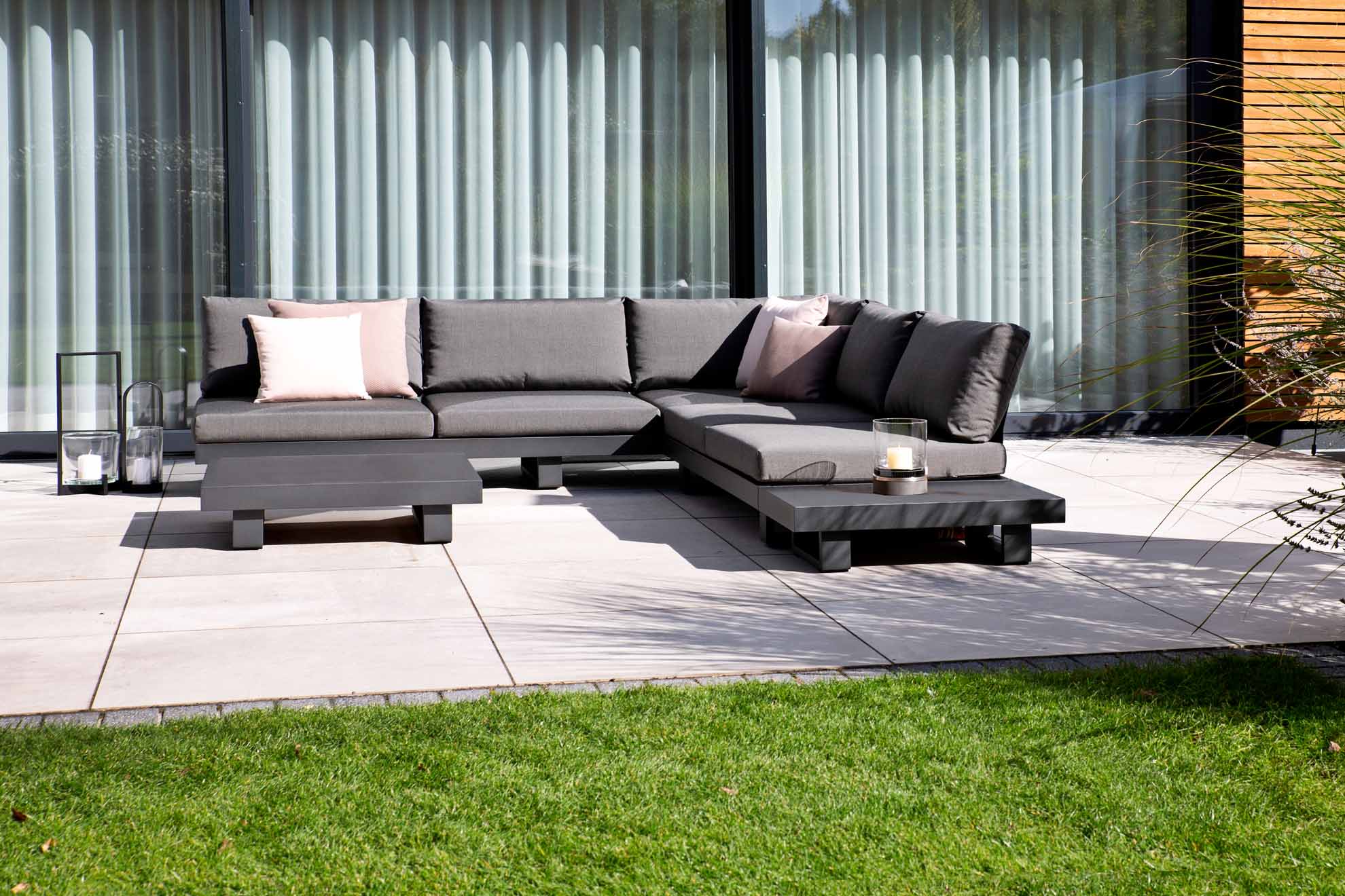 Kaffeetisch  von  Jati & Kebon . Passend zur Lounge Serie  Fano XS Material: Aluminium Farbe: Pulverbeschichtet, eisengrau Maße: H 22cm B 76cm T 45cm