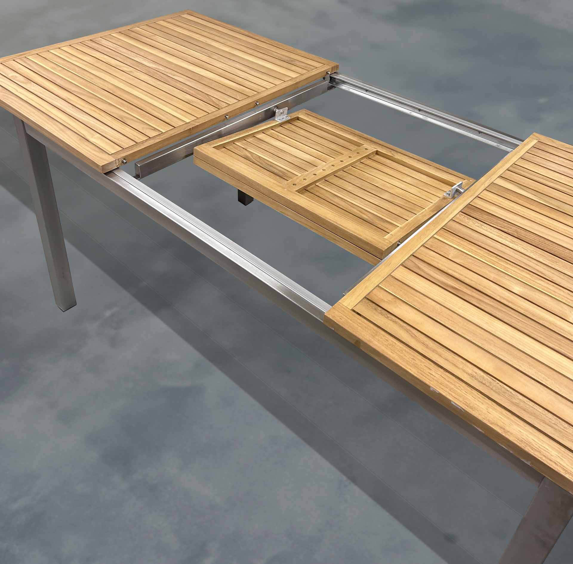 Kreta Ausziehtisch 200/257x100cm rechteckig, Edelstahl/Teak