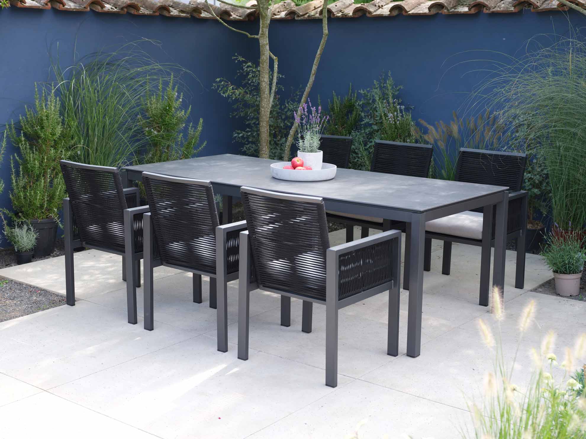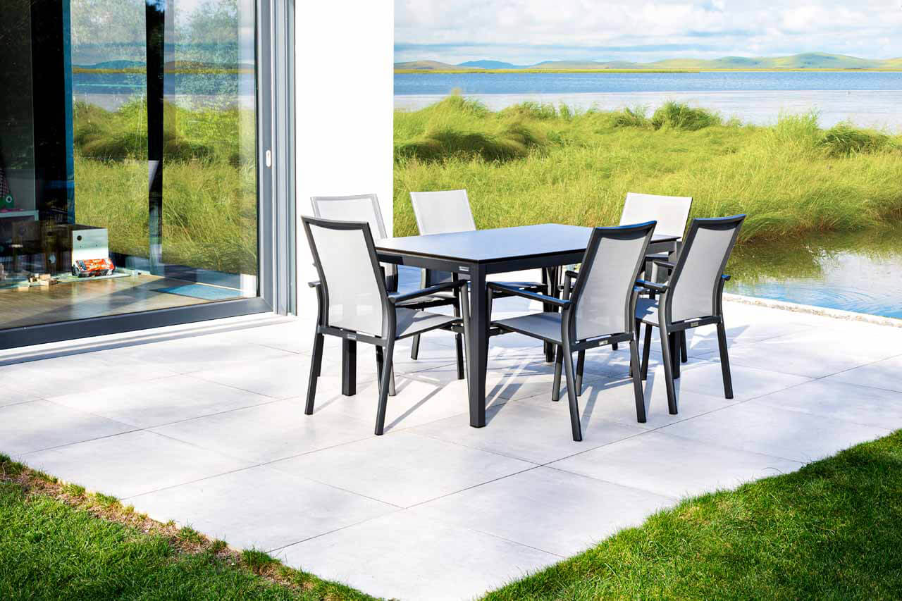 Das Aluminium Tischgestell aus der Serie Lugo von Jati & Kebon ist vorgesehen für nicht ausziehbare Tischplatten der Größe 90x90cm mit einer Höhe von 74cm. Die Tischbeine sind abschraubbar und die Oberfläche besteht aus einer Pulverbeschichtung der Farbe „eisengrau“. Eine große Anzahl an Tischplatten in unterschiedlichen Materialien und Farben ermöglicht Ihnen die Gestaltung eines ganz persönlichen Gartentisches. Die Tischplatten aus HPL, Dekton® oder Keramik sind wetterfest und deshalb hervorragend für den Aussenbereich geeignet. Wählen Sie einfach eine Farbe nach Ihrem ganz persönlichem Geschmack.