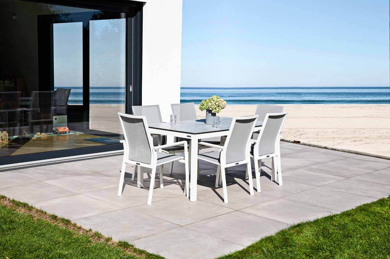 Gartenmöbel aus Aluminium sind geradezu ideal für den Einsatz im Freien geeignet. Das geringe Gewicht, die Wetterbeständigkeit, sowie die außerordentliche Langlebigkeit machen Aluminium zur 1. Wahl bei Gartenmöbeln aus Metall. Damit das Material nicht „ausblüht“ sind unsere Aluminium-Gartenmöbel mit hochwertigen Pulverbeschichtungen versehen. Viele Artikel sind in verschiedenen Farben erhältlich. Fast alle Aluminium-Gartenmöbel aus unserem Sortiment werden in aufwendiger Handarbeit gefertigt. Die Schweißnähte werden geschliffen und poliert, sodass Verbindungen anmuten als wären sie „aus einem Guss“.