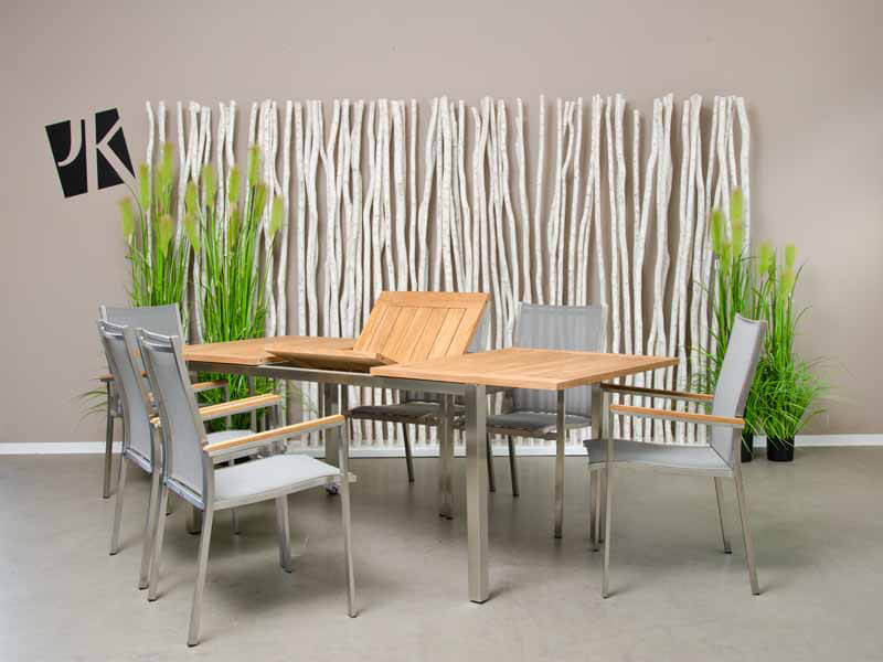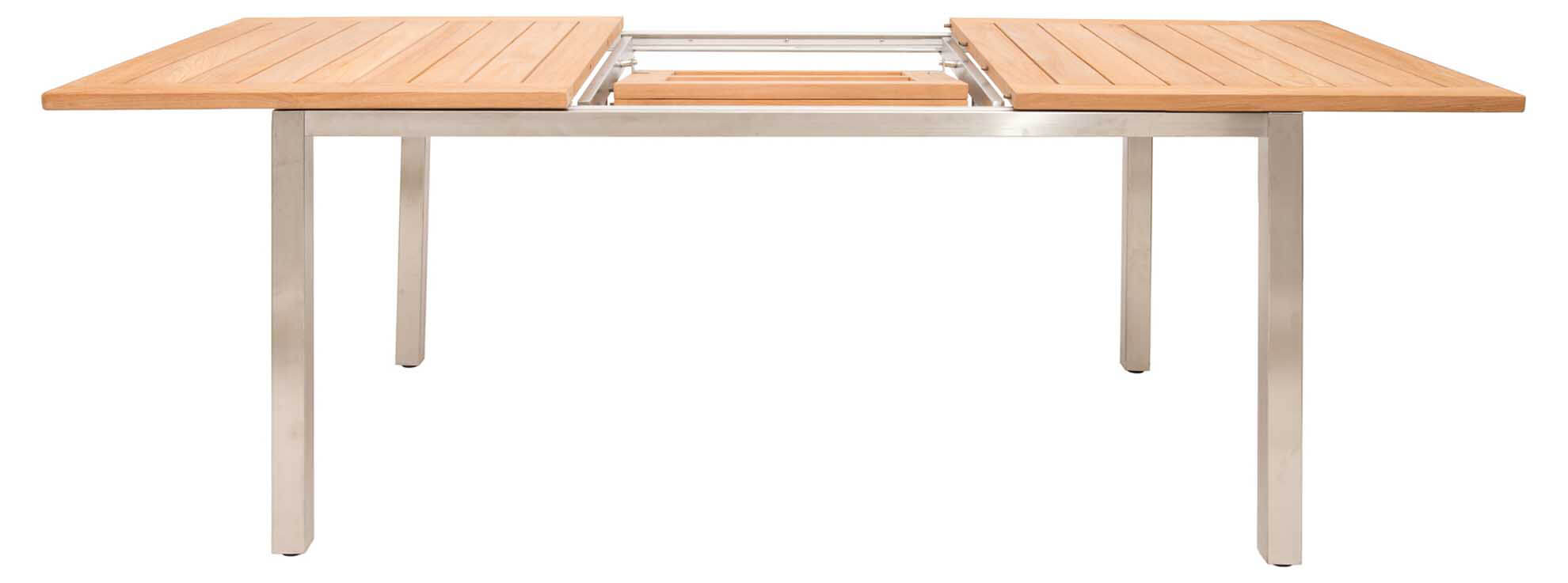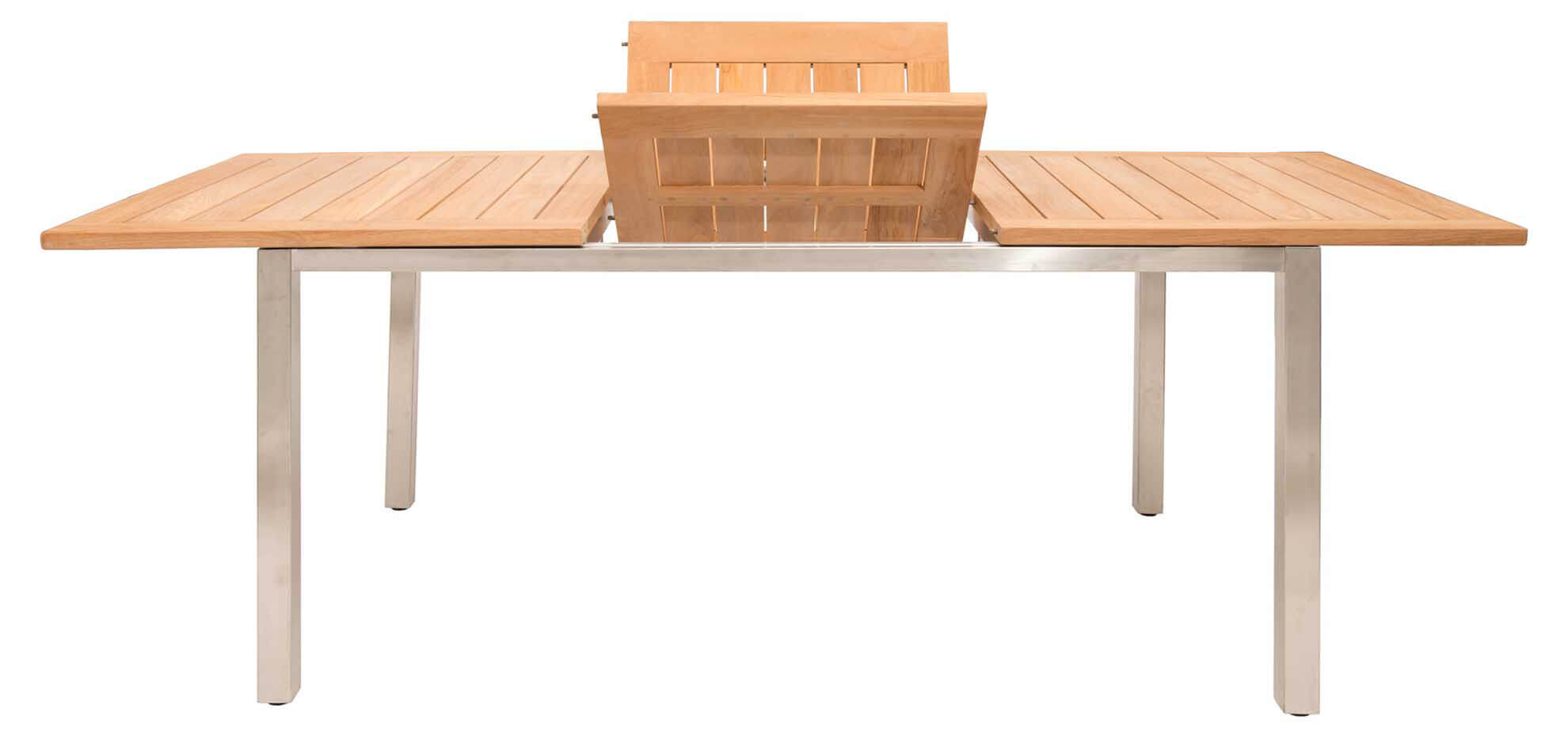 Mallorca Ausziehtisch 150/207x90cm rechteckig, Edelstahl/Teak