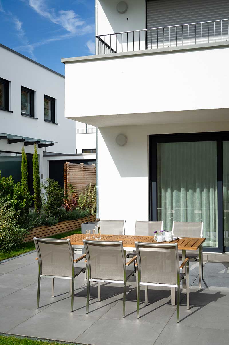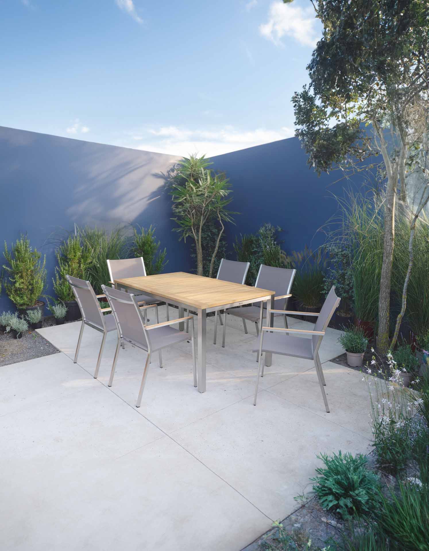 Gartenmöbel aus Edelstahl sind nicht nur wetterbeständig, sondern auch äußerst strapazierfähig. Das Material ist sehr stabil, deshalb können Edelstahl-Gartenmöbel mit viel kleineren Profilen hergestellt werden und wirken deutlich filigraner als andere Materialien. Die gebürstete Oberfläche verleiht dem Möbelstück eine exklusive Anmutung. Edelstahl ist unempfindlich gegen Schäden durch Anstoßen und Verkratzen, da die Oberfläche nicht lackiert ist. Kleine Beschädigungen können einfach mit einem metallfreien Reinigungsvlies bearbeitet werden. Die Edelstahl-Gartenmöbel in unserem Sortiment sind nicht für den Einsatz in Hallenbädern oder in Küstennähe am Meer geeignet!