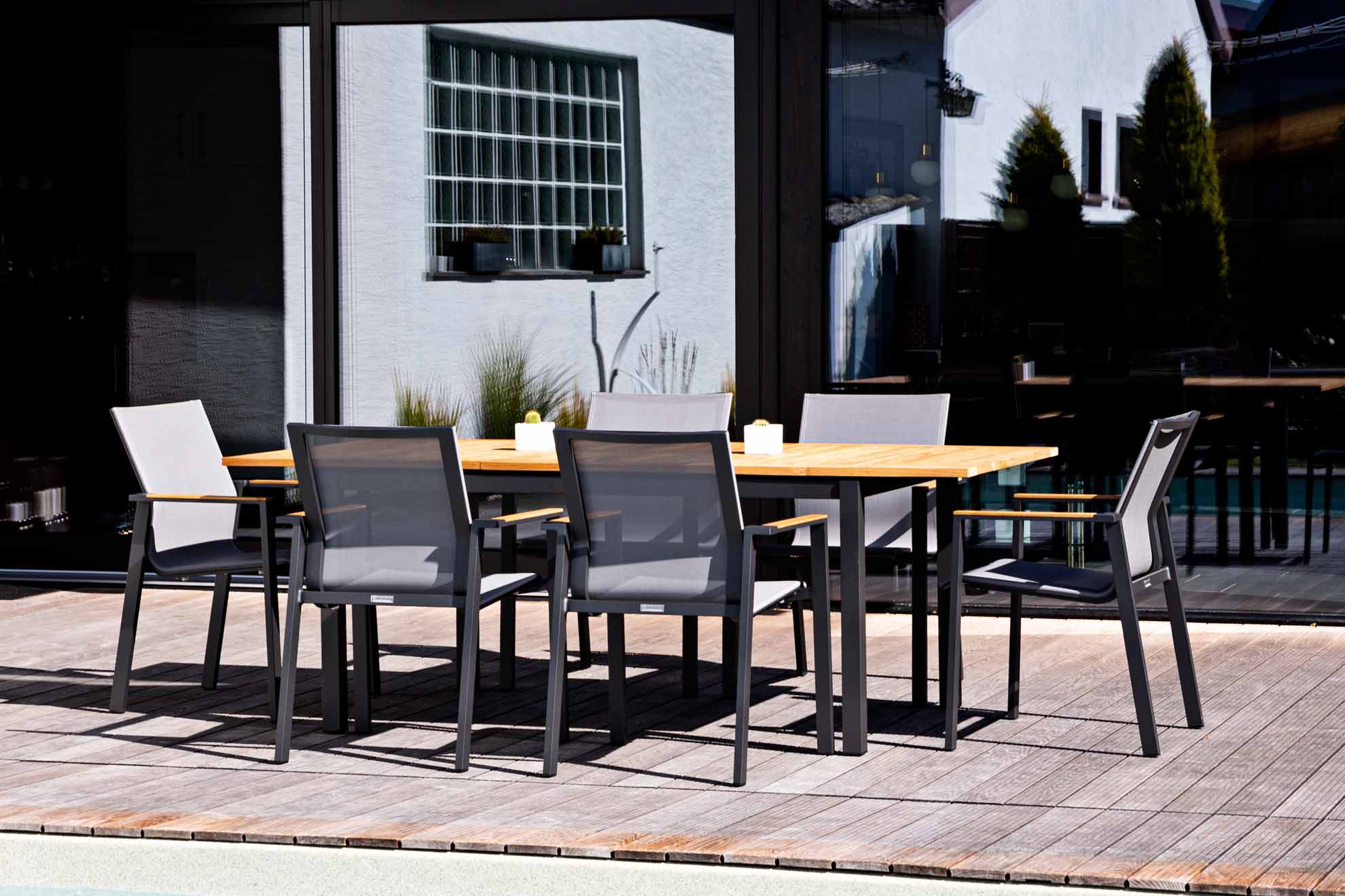 Produktinformationen "Mallorca Ausziehtisch 200/257x100cm rechteckig, eisengrau/Teak"