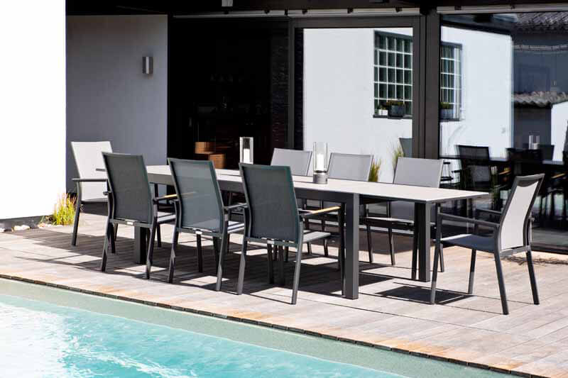 Textilen-Gewebe werden für die Sitz- und Rückenbespannung zahlreicher Gartenmöbel verwendet. Dieses Gewebe wirkt leicht und transparent und ist viel komfortabler als z.B. massive Latten. Außerdem trägt es auch dazu bei, dass die Möbel leichter und handlicher sind. Textilen-Bespannungen haben eine sehr hohe Tragkraft. Sie sind robust, UV-beständig und pflegeleicht.