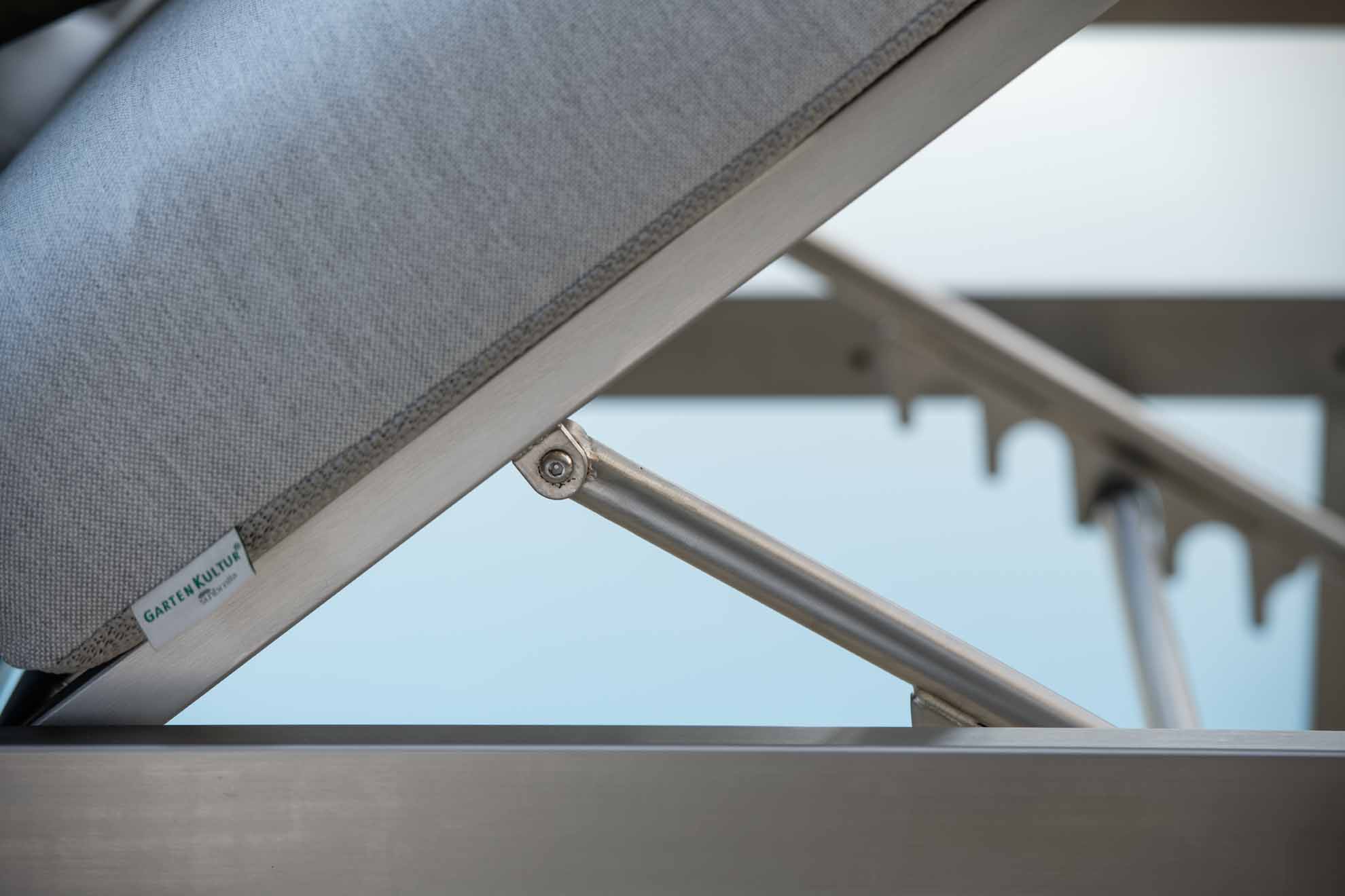 Die Rao Multifunktionsliege verfügt über versteckte Rollen im Gestell, die ein einfaches Bewegen und Umstellen ermöglichen. So können Sie Ihre Sitzordnung mühelos anpassen und Ihre Outdoor-Lounge nach Bedarf gestalten.