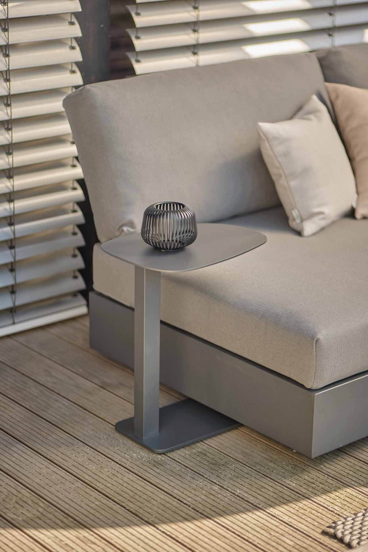 Die weiche Form mit abgerundeten Ecken verleiht dem Tucino eine zeitlose Eleganz. Das stabile Aluminium als Grundmaterial und die hochwertige Pulverbeschichtung in eisengrau-matt sorgen nicht nur für eine ansprechende Optik, sondern auch für Langlebigkeit und Widerstandsfähigkeit.