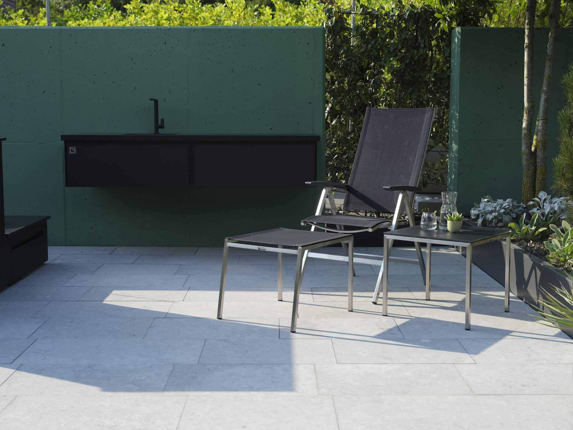 Der Varzo Verstellsessel von Jati & Kebon wird gefertigt aus rostfreiem Edelstahl mit Armlehnen aus Aluminium "eisengrau". Die Bespannung der Sitz- und Rückenfläche besteht aus witterungsbeständigem Jatex-Gewebe, daß speziell für den Außenbereich entwickelt wurde und mit der verstellbaren Rückenlehne finden Sie immer die bestmögliche Sitzposition. Der Stuhl ist zusammenklappbar und lässt sich daher einfach und platzsparend verstauen. Gestell: Edelstahl/matt Armlehnen: Aluminium/eisengrau Bespannung: Jatex/silbergrau