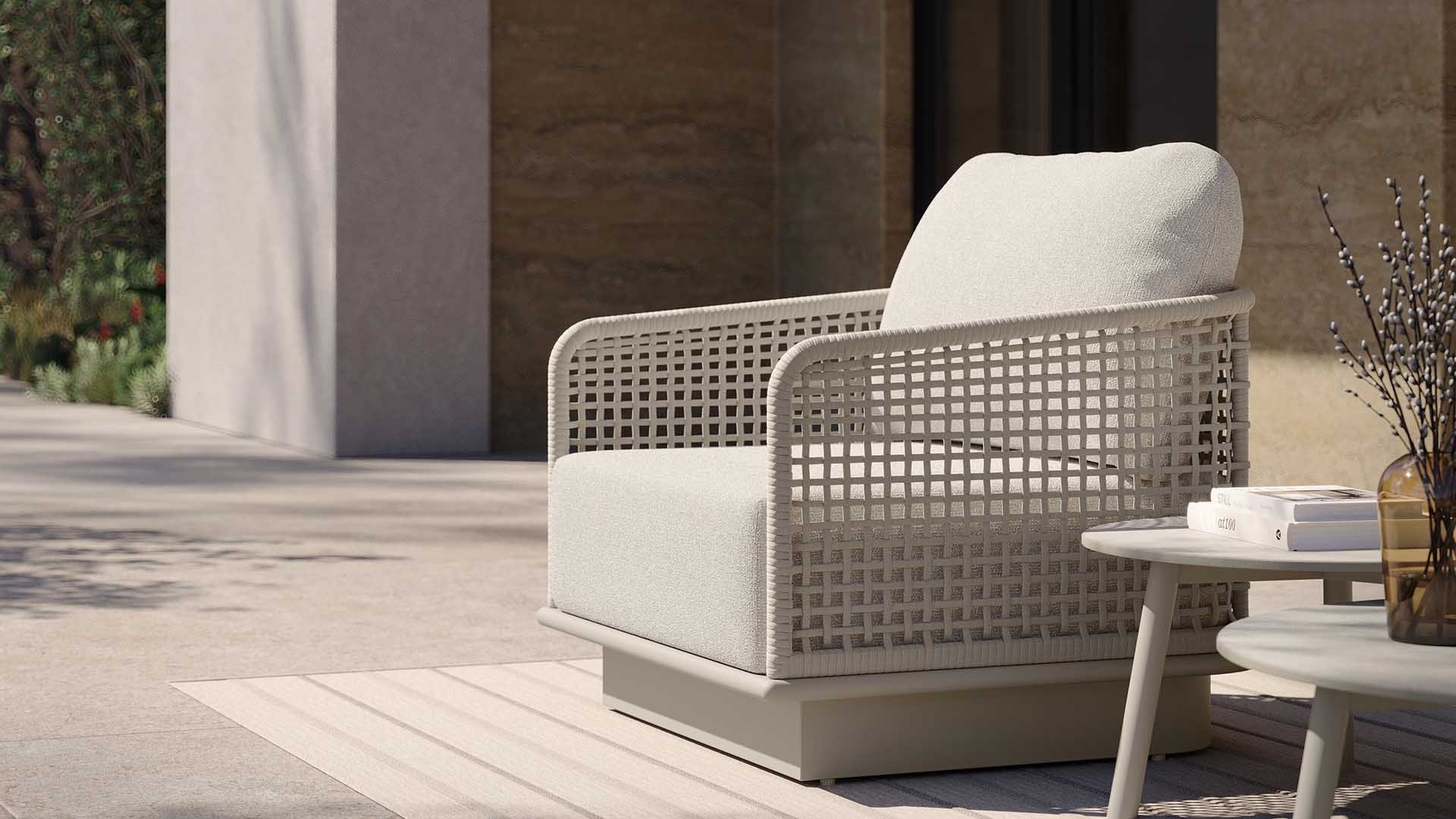Die Serie Acri vereint auf einzigartige Weise die natürliche Schönheit und Leichtigkeit von Aluminium mit der Eleganz von Rope Faser. Jedes Möbelstück ist ein Meisterwerk, das höchsten Ansprüchen gerecht wird.