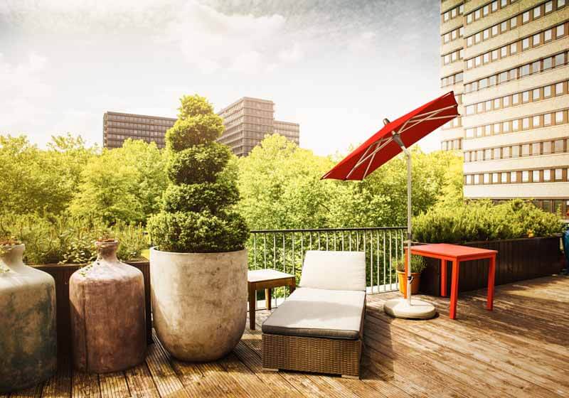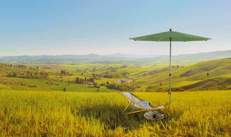 Der ALU SMART easy Sonnenschirm von Glatz ist ein einfaches Einstiegsmodell unter den Mittelstockschirmen. Er ist leicht zu bedienen, vielseitig verstellbar und robust gebaut. Mit einem Knickmechanismus und stufenloser Höhenverstellung bietet er optimalen Sonnenschutz bei schräg einfallender oder tiefstehender Sonne. Das Gestell und die Streben bestehen aus eloxiertem Aluminium, was den Schirm leicht (5-9 kg) und witterungsbeständig macht. Das rechteckige Schirmdach aus Polyester (Stoffklasse 2) misst 210x150 cm. Die Bedienung ist unkompliziert: Das Schirmdach wird manuell nach oben geschoben und fixiert sich automatisch. Es kann geknickt und in der Höhe verstellt werden, was besonders nützlich in Loggien oder unter Überdachungen ist. Das Schließen erfolgt durch einfaches Aufstellen des Schirmteils und Ziehen des Schiebers nach unten.Wählen Sie Ihren idealen ALU SMART Sonnenschirm aus einer Vielzahl von saisonalen Farben und Formen. Entdecken Sie auch Zubehör wie Schirmständer, Rollensockel, Bodenhülsen und Schutzhüllen, um Ihren Sonnenschirm bei Nichtgebrauch zu schützen.