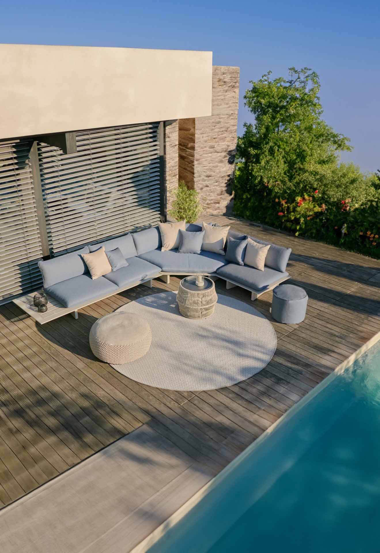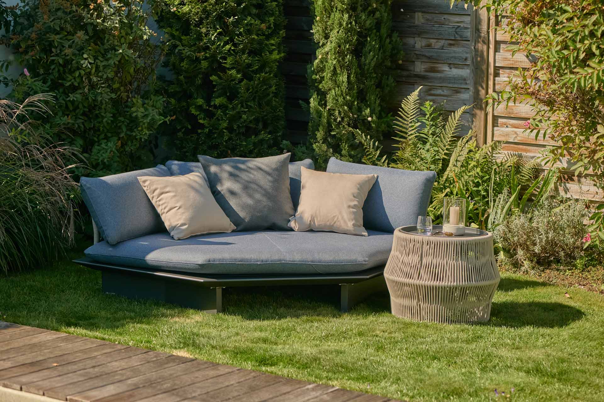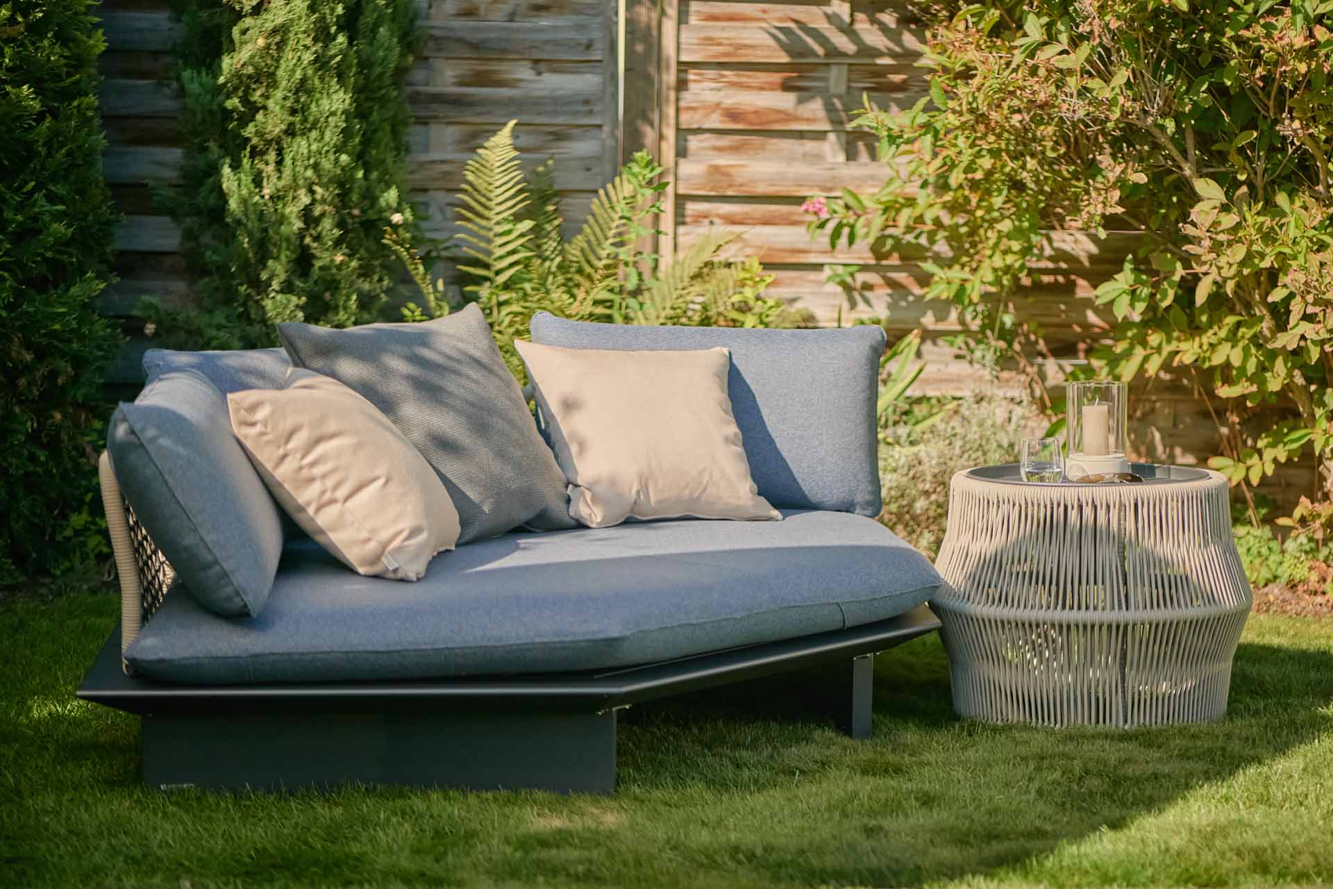 Seilmöbel - Qualitätsfasern mit natürlichem Aussehen. Die Polyolefinfaser hat ein natürliches Aussehen, ist jedoch pflegeleicht und unempfindlich gegen die Kräfte von Mutter Natur. Das Seil ist sowohl für den Innen- als auch für den Außenbereich geeignet. Wie keine andere synthetische oder natürliche Faser ist sie resistent gegen Pilze, Bakterien, Sonnenlicht, Feuchtigkeit, Chlor, Lebensmittelflecken und Schweiß. Es ist extrem leicht, waschbar, umweltfreundlich und vollständig recycelbar. Kombinieren Sie die Sitze und Stühle aus Rope-Geflecht mit maßgeschneiderten, wetterbeständigen Kissen.
