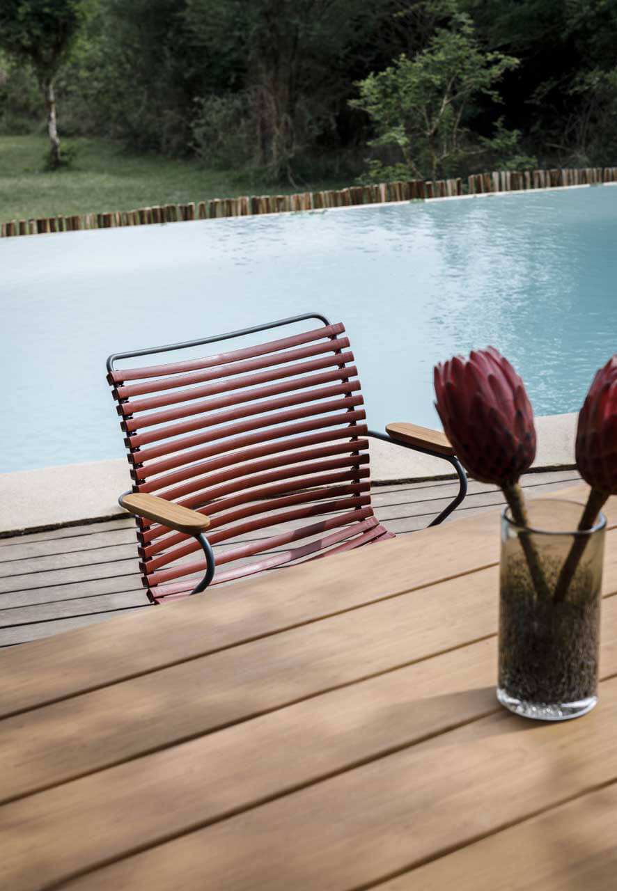 - Polypropylen Kunststoff Lammellen der Click Kollektion von Houe sind nicht lackiert, sondern komplett durchgefärbt. Die verwendeten Farben enthalten darüber hinaus einen UV-Schutz um das verblassen bei Sonneneinstrahlung zu verhindern.