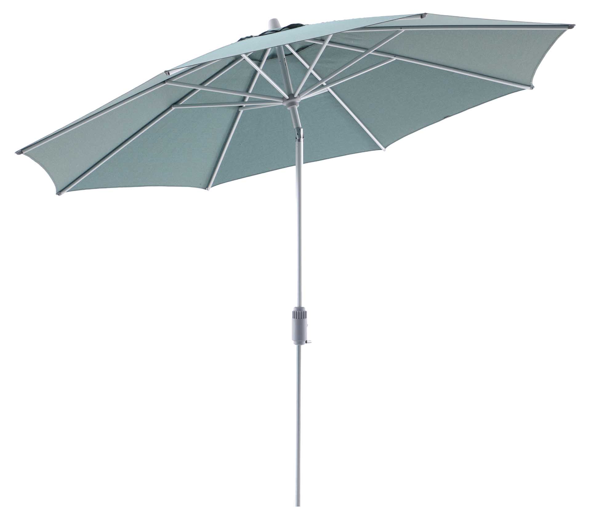 Der Komfort beginnt bereits beim Öffnen: Der Schirm verfügt über eine Kurbelmechanik, mit der sich das Dach bequem und sicher öffnen lässt. Zusätzlich bietet er einen Knickmechanismus, der über ein Drehrad oberhalb der Kurbel stufenlos einstellbar ist — so lässt sich das Schirmdach optimal zur Sonnenlage ausrichten.