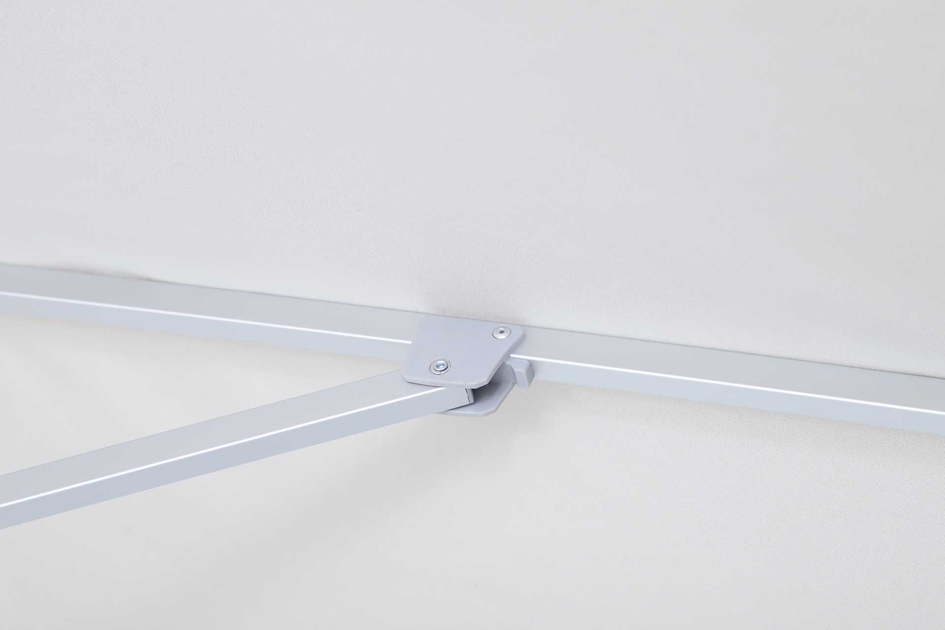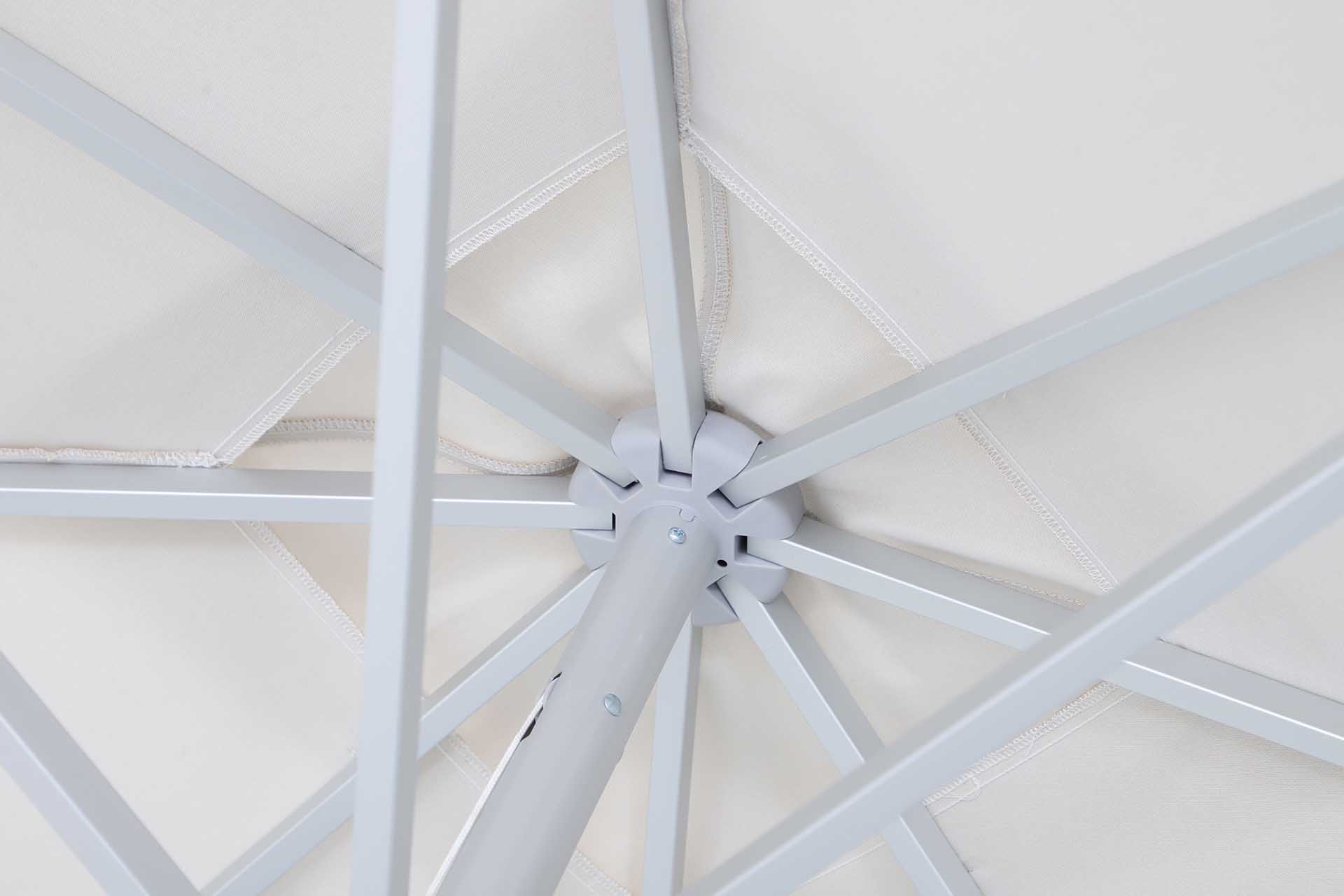 UNO: eloxirtes Aluminium, Streben 14×20 mm, selbstspannende Strebenenden für ein dauerhaft straffes Schirmdach.