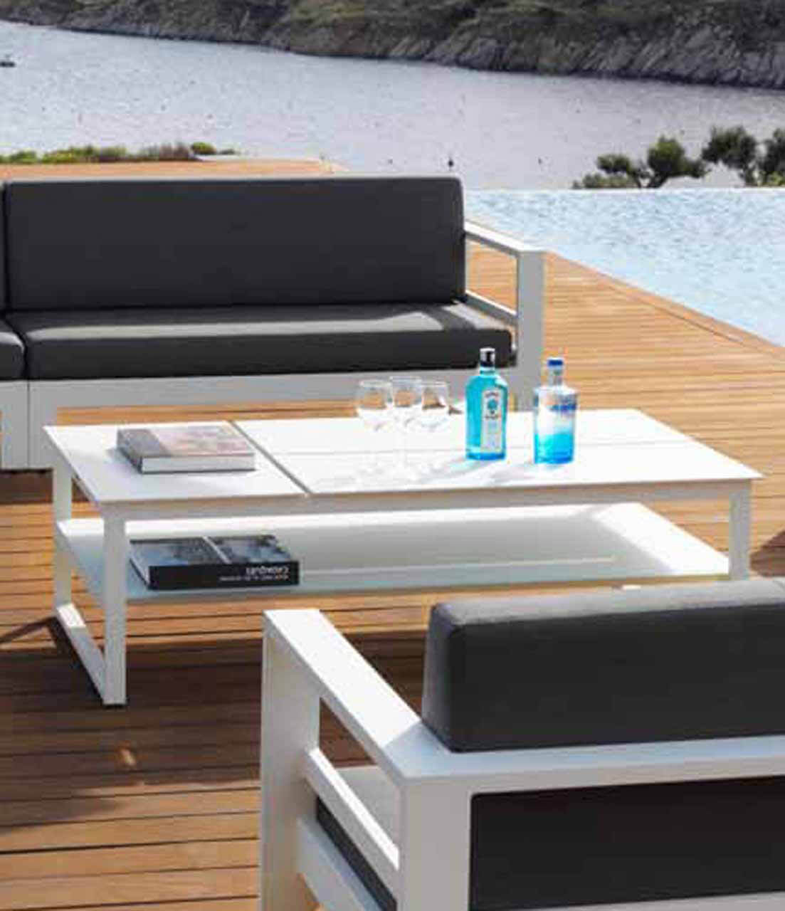 Produktname: Miami Lounge Multipositionstisch 110x80cm rechteckig, weiß/Glas