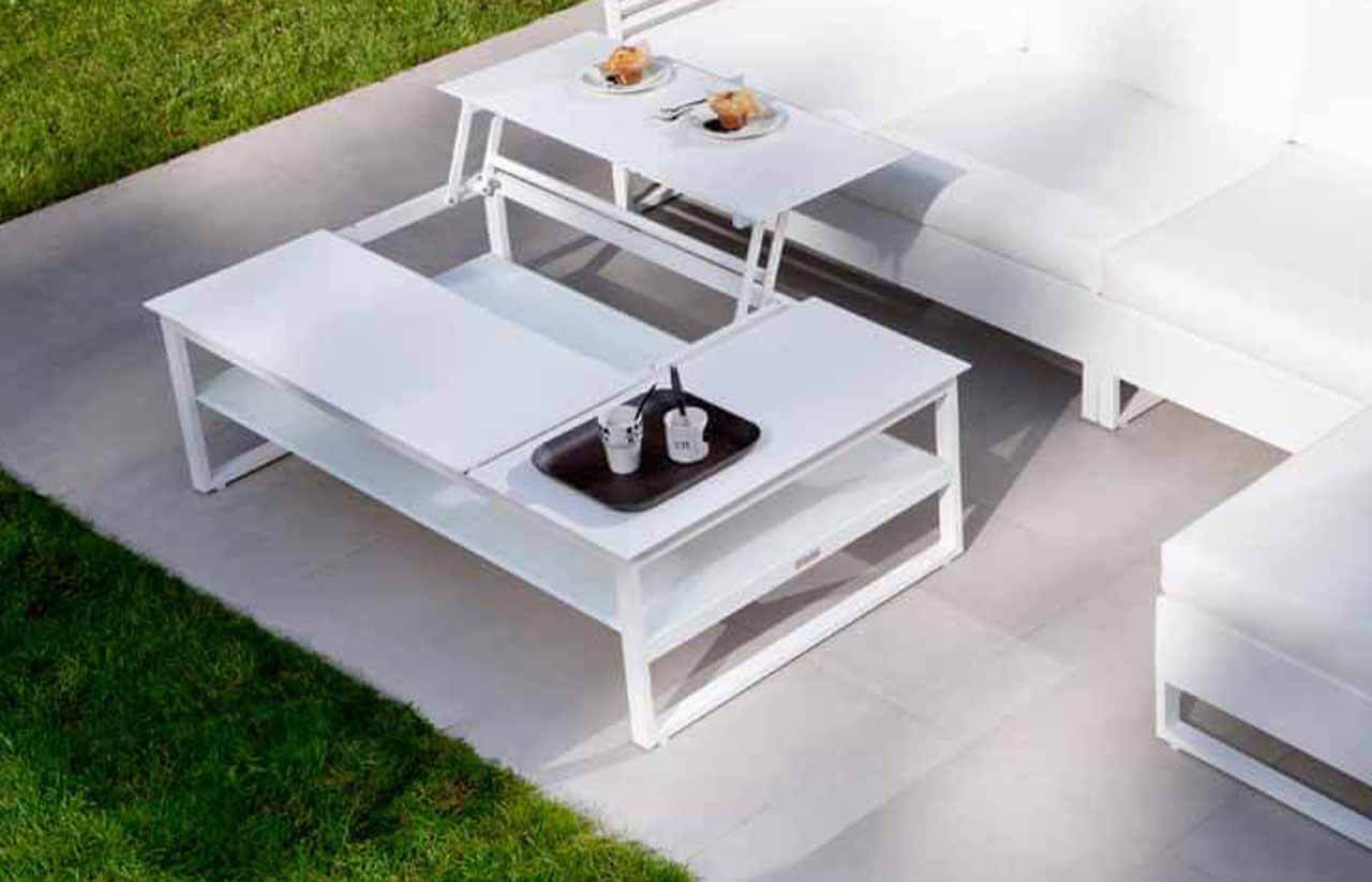 Der Miami Multipositionstisch von Jati & Kebon ist ein ultimativer Alleskönner. Anstelle des einfachen Loungetisches, welcher nur als Ablage dient, hat er 3 aufstellbare Platten. Bei Bedarf verwandeln Sie ihn im Handumdrehen zum Esstisch in bequemer Höhe. Der zusätzliche Zwischenboden dient als praktische Ablage. Genießen Sie so das Mittagessen oder Kaffee und Kuchen einfach in Ihrer gemütlichen Outdoor Lounge. Gestell: Aluminium, "eisengrau" Tischplatte: Aluminium "eisengrau" Zwischenboden: Einscheibensicherheitsglas (ESG) "grau" Maße: B 110cm T 80cm H 43cm