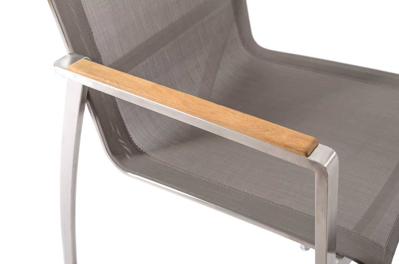 Monaco Stapelsessel Edelstahl/silbergrau, Armlehnen Teak