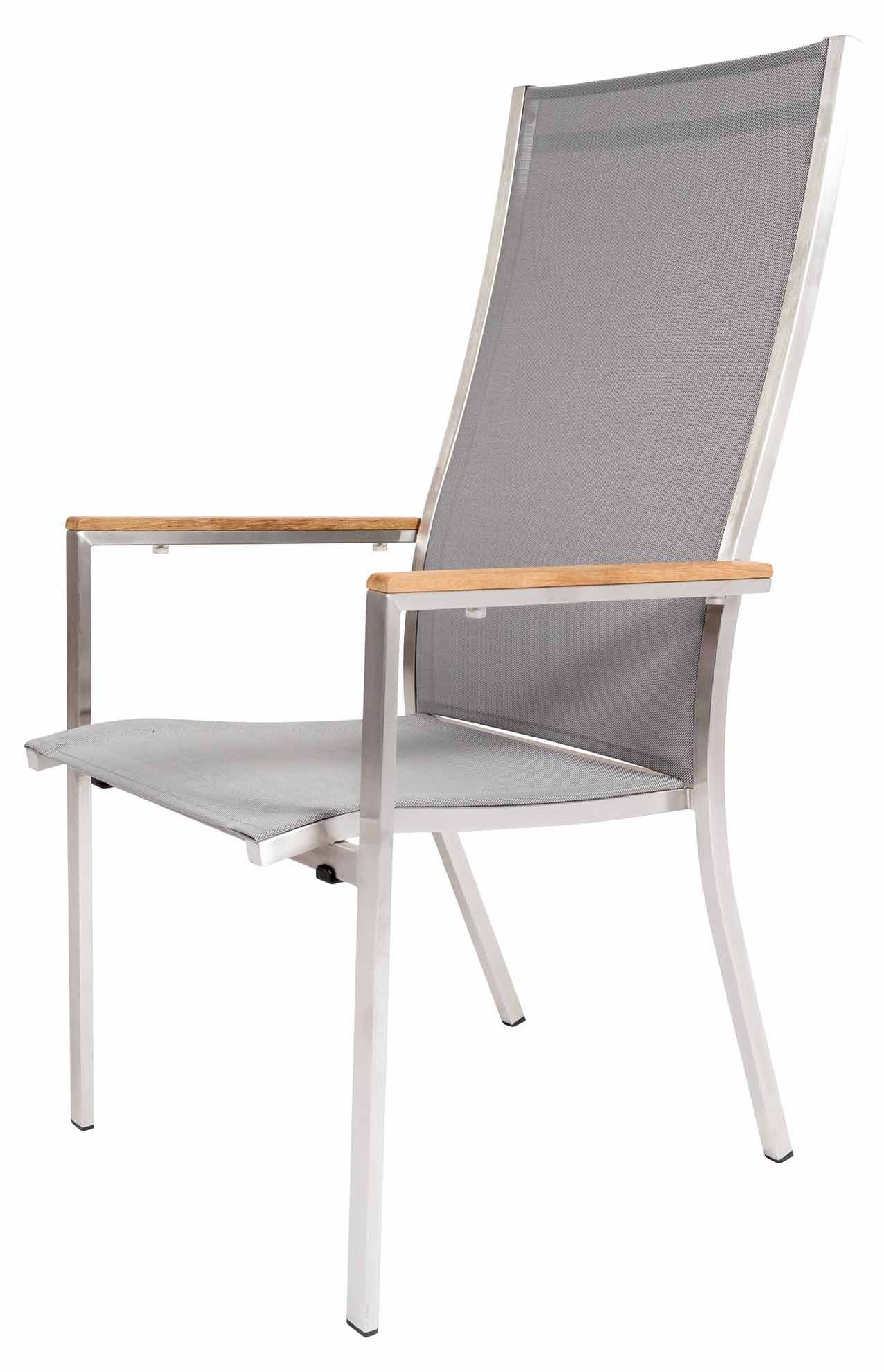 Produktname: Monte Carlo Stapelsessel hoch, Edelstahl/silbergrau, Armlehnen Teak