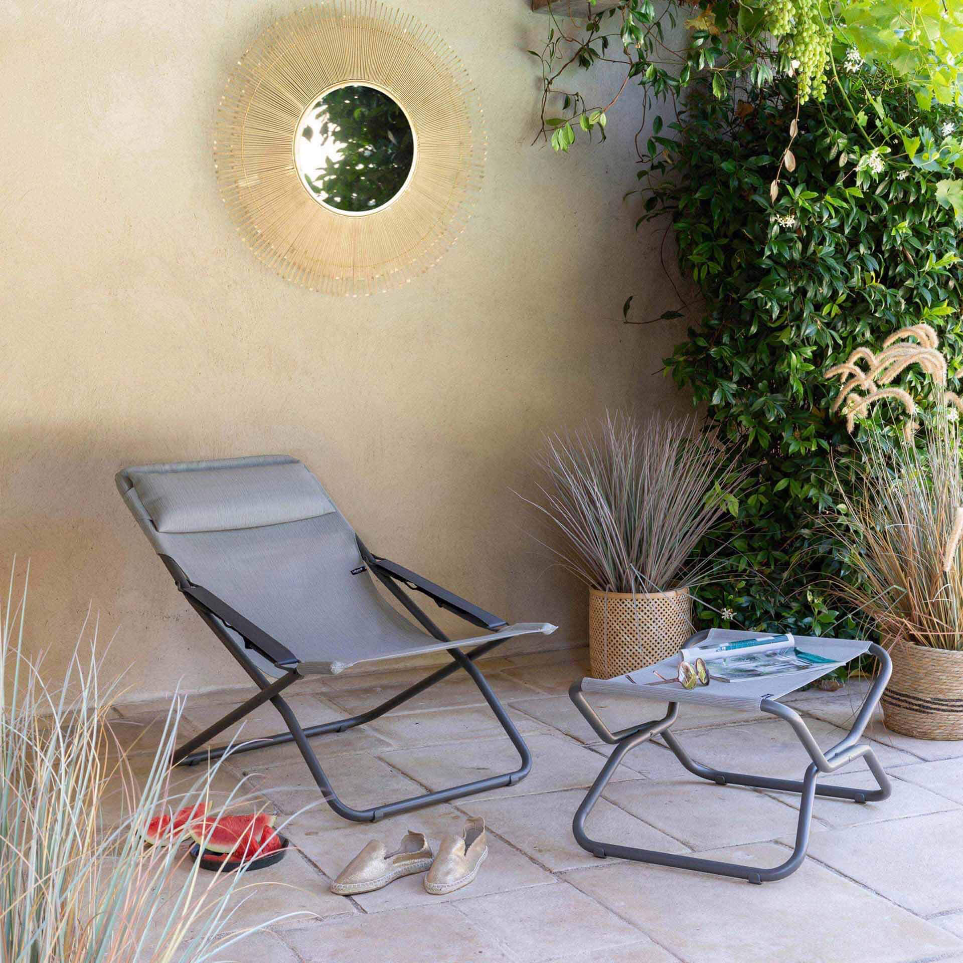 Der Next Hocker von Lafuma dient als Beinauflage und ist die ideale Ergänzung zu einem Relaxsessel oder einem Liegestuhl. Desweiteren ist der Hocker zusammenklappbar, leicht zu verstauen und transportabel. Die korrosionsbeständige, pulverbeschichtete Stahlkonstruktion in titane schützt gegen Witterungseinflüsse und Salzwasser. Der Stoffbezug aus Batyline® duo galet trocknet besonders schnell und ist pflegeleicht, das atmungsaktive Material ist bequem und sorgt für optimalen Komfort.