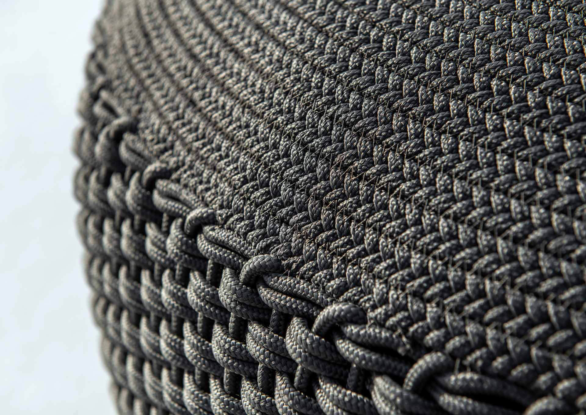 Seilmöbel - Qualitätsfasern mit natürlichem Aussehen. Die Polyolefinfaser hat ein natürliches Aussehen, ist jedoch pflegeleicht und unempfindlich gegen die Kräfte von Mutter Natur. Das Seil ist sowohl für den Innen- als auch für den Außenbereich geeignet. Wie keine andere synthetische oder natürliche Faser ist sie resistent gegen Pilze, Bakterien, Sonnenlicht, Feuchtigkeit, Chlor, Lebensmittelflecken und Schweiß. Es ist extrem leicht, waschbar, umweltfreundlich und vollständig recycelbar. Kombinieren Sie die Sitze und Stühle aus Rope-Geflecht mit maßgeschneiderten, wetterbeständigen Kissen.