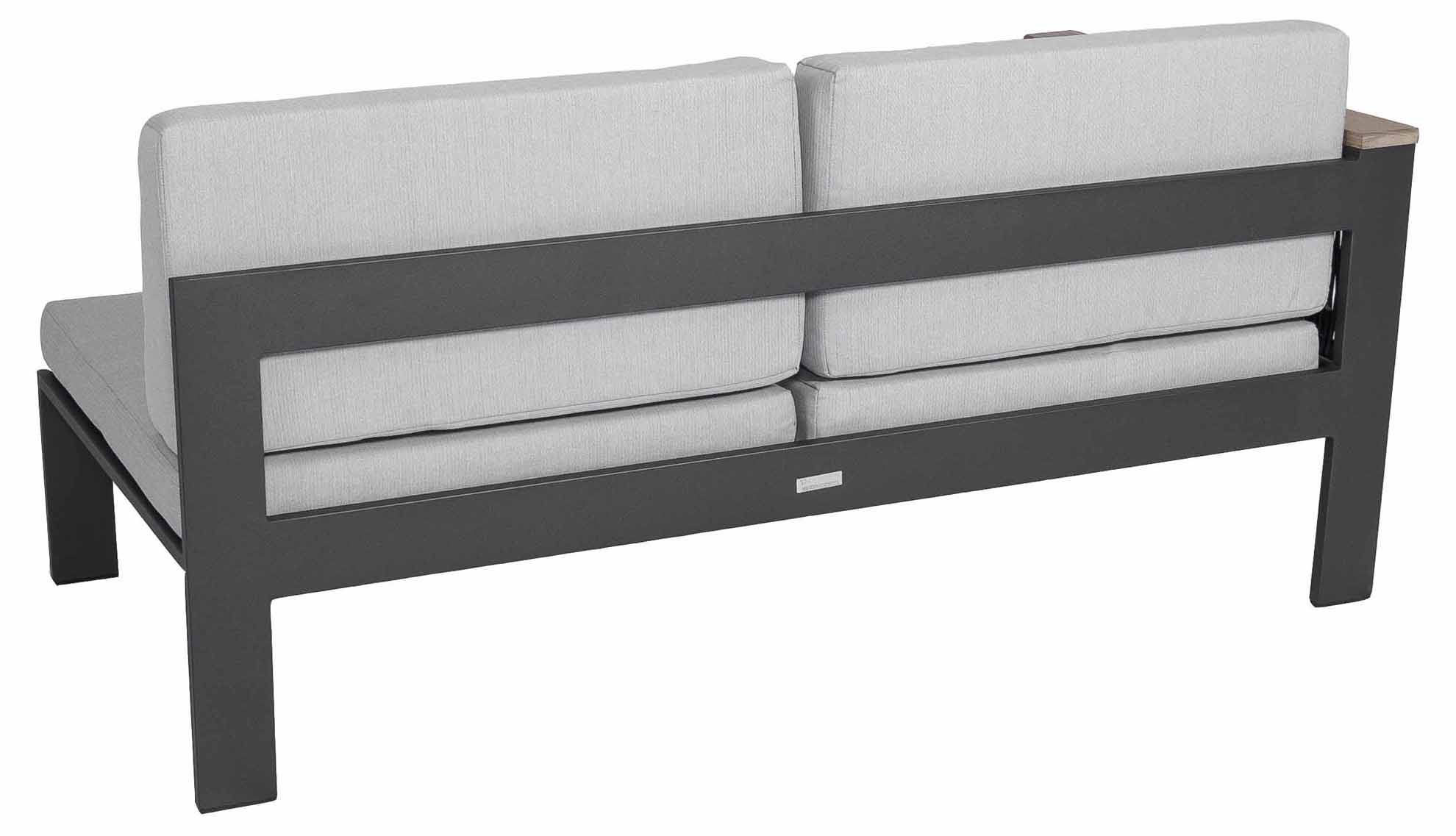 Produktname: Purton 2-Sitzer Lounge Seitenteil rechts, grau/schwarz, Armlehne Teak, Kissen hellgrau