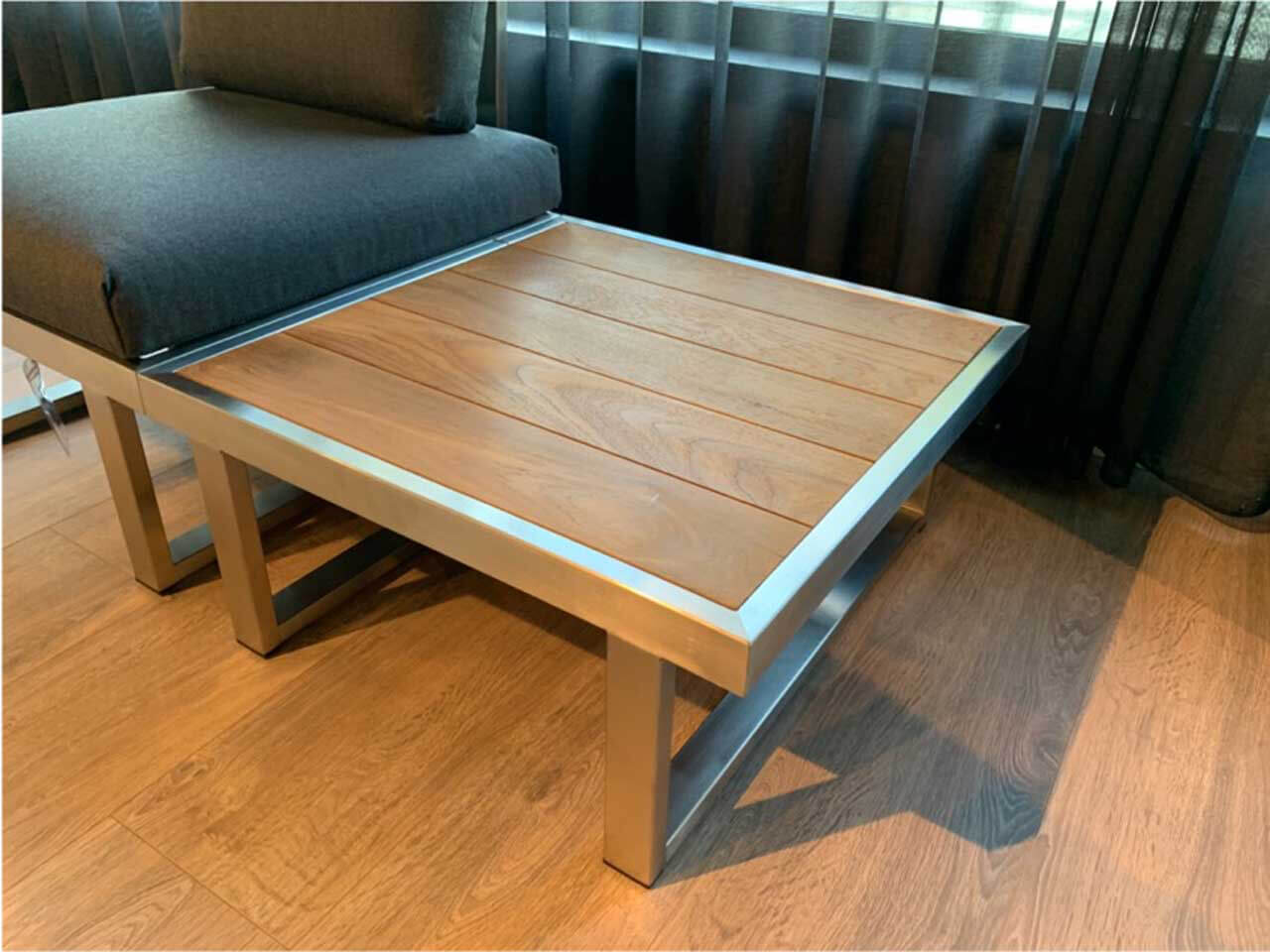 Rao Lounge Beistelltisch 70x70cm, Höhe 32cm, Edelstahl/Teak