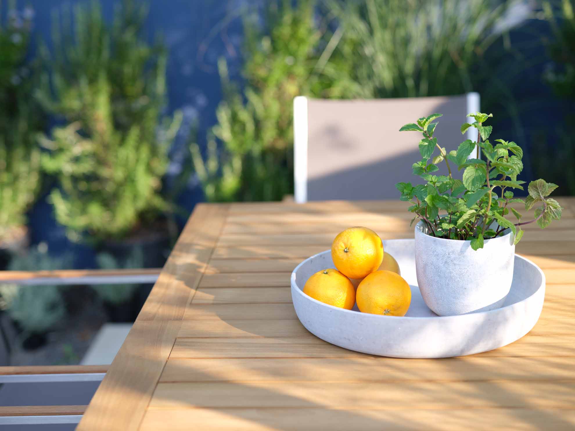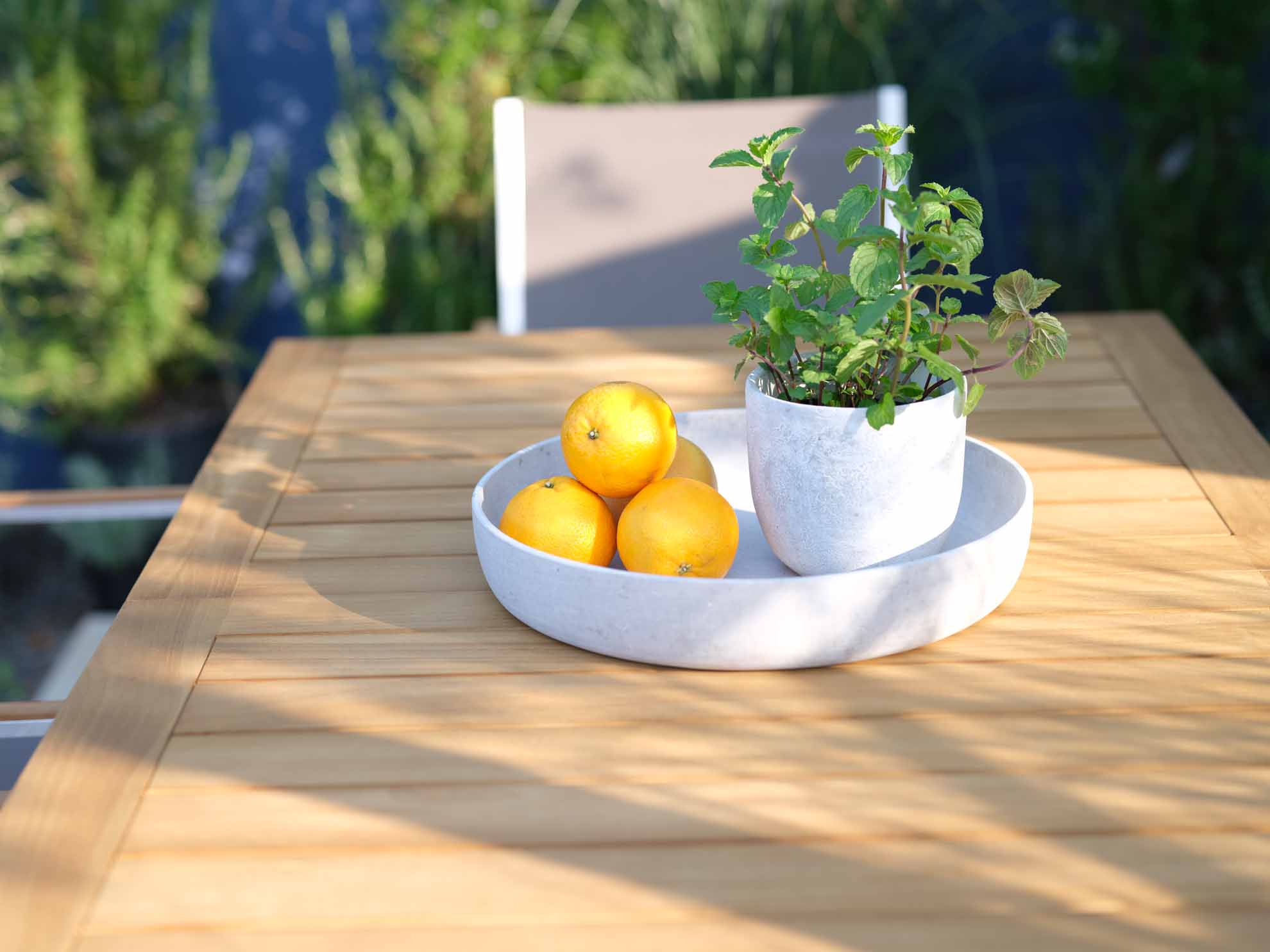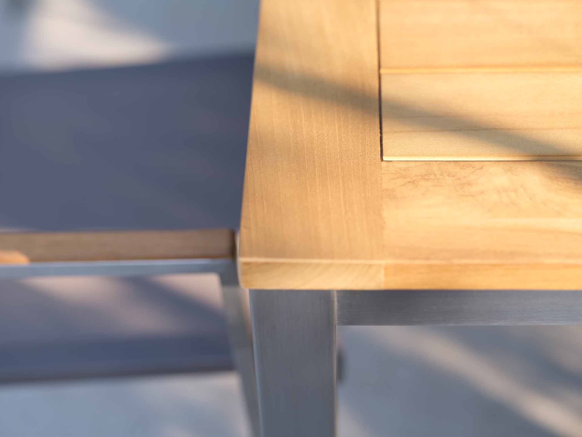 Gartenmöbel aus Edelstahl sind nicht nur wetterbeständig, sondern auch äußerst strapazierfähig. Das Material ist sehr stabil, deshalb können Edelstahl-Gartenmöbel mit viel kleineren Profilen hergestellt werden und wirken deutlich filigraner als andere Materialien. Die gebürstete Oberfläche verleiht dem Möbelstück eine exklusive Anmutung. Edelstahl ist unempfindlich gegen Schäden durch Anstoßen und Verkratzen, da die Oberfläche nicht lackiert ist. Kleine Beschädigungen können einfach mit einem metallfreien Reinigungsvlies bearbeitet werden. Die Edelstahl-Gartenmöbel in unserem Sortiment sind nicht für den Einsatz in Hallenbädern oder in Küstennähe am Meer geeignet!
