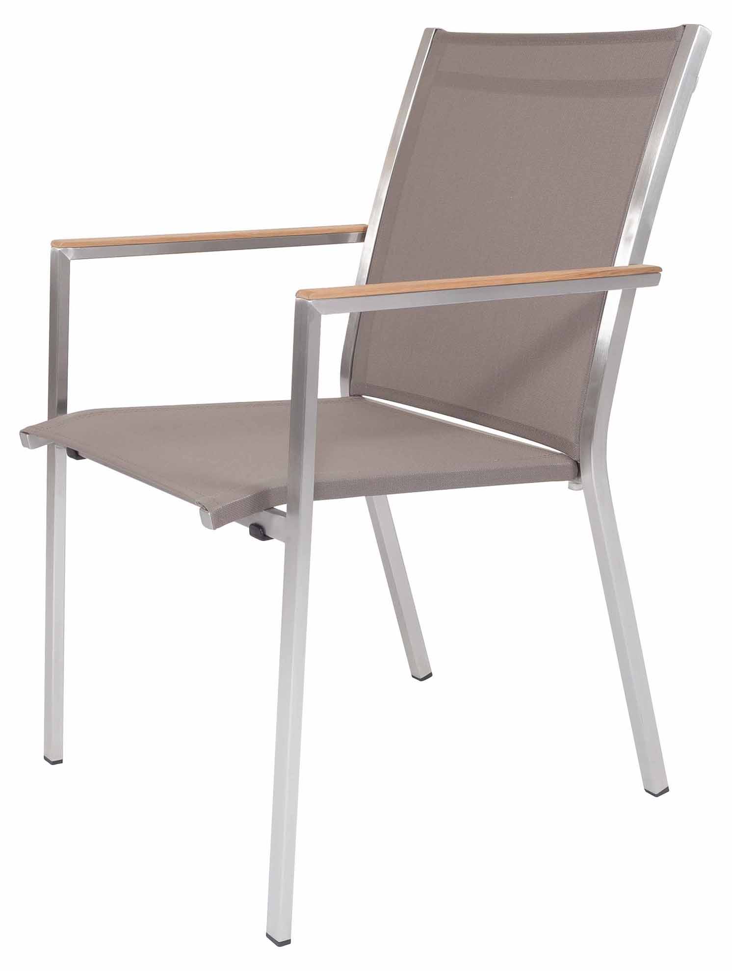 Produktname: Rome ST.S Stapelsessel Edelstahl/taupe Armlehnen Teak
