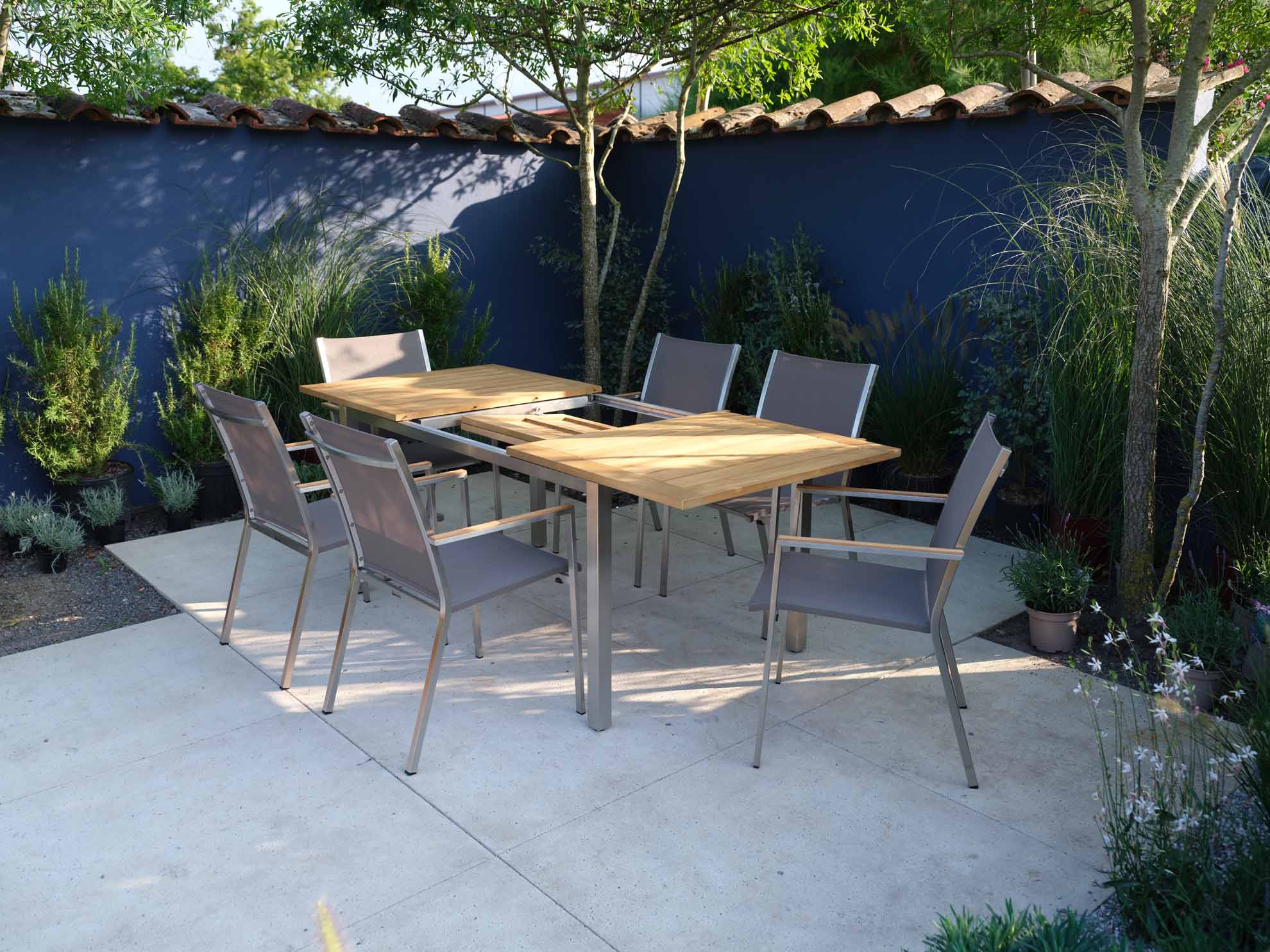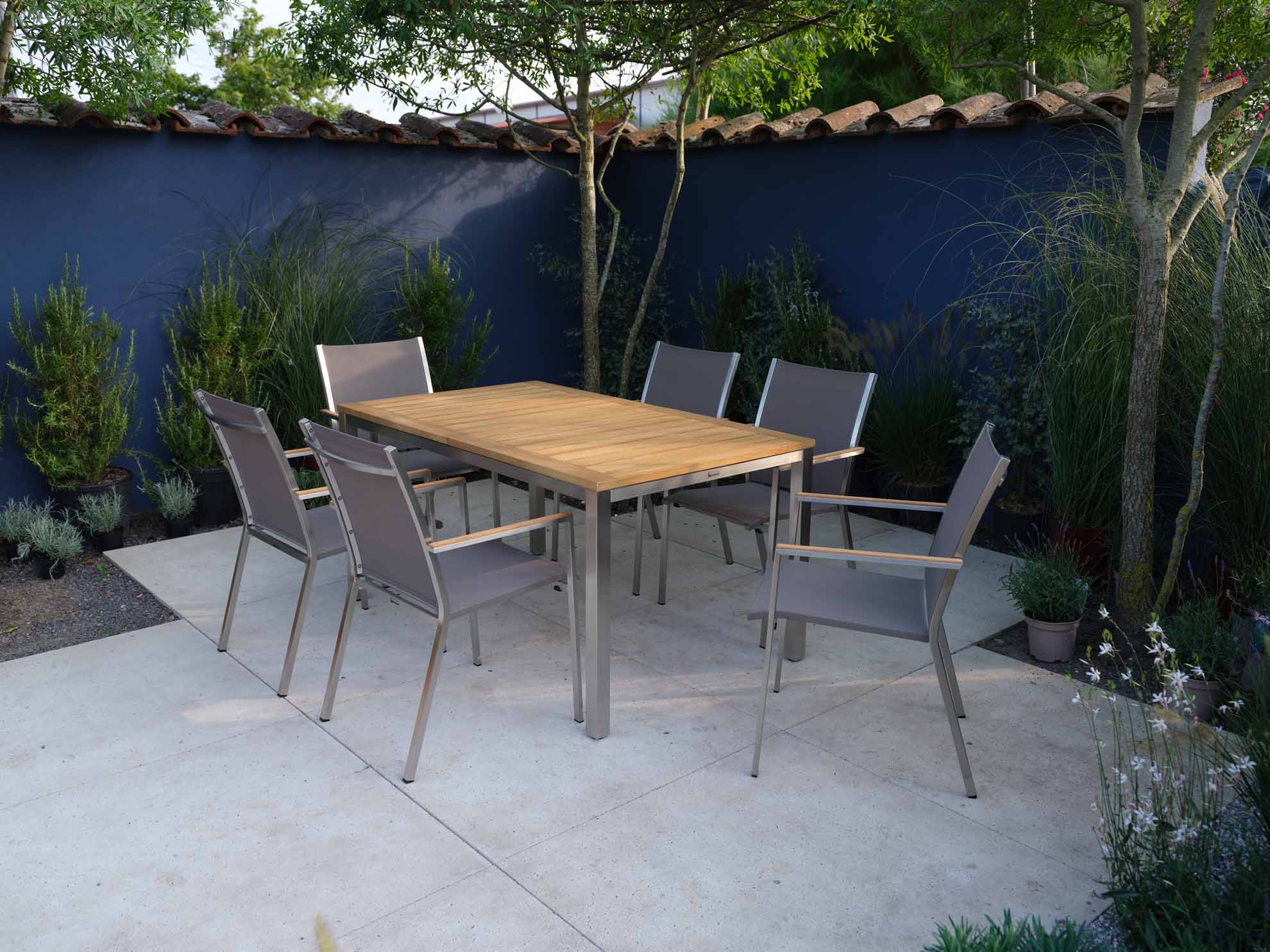 Rome ST.S Stapelsessel Edelstahl/taupe Armlehnen Teak