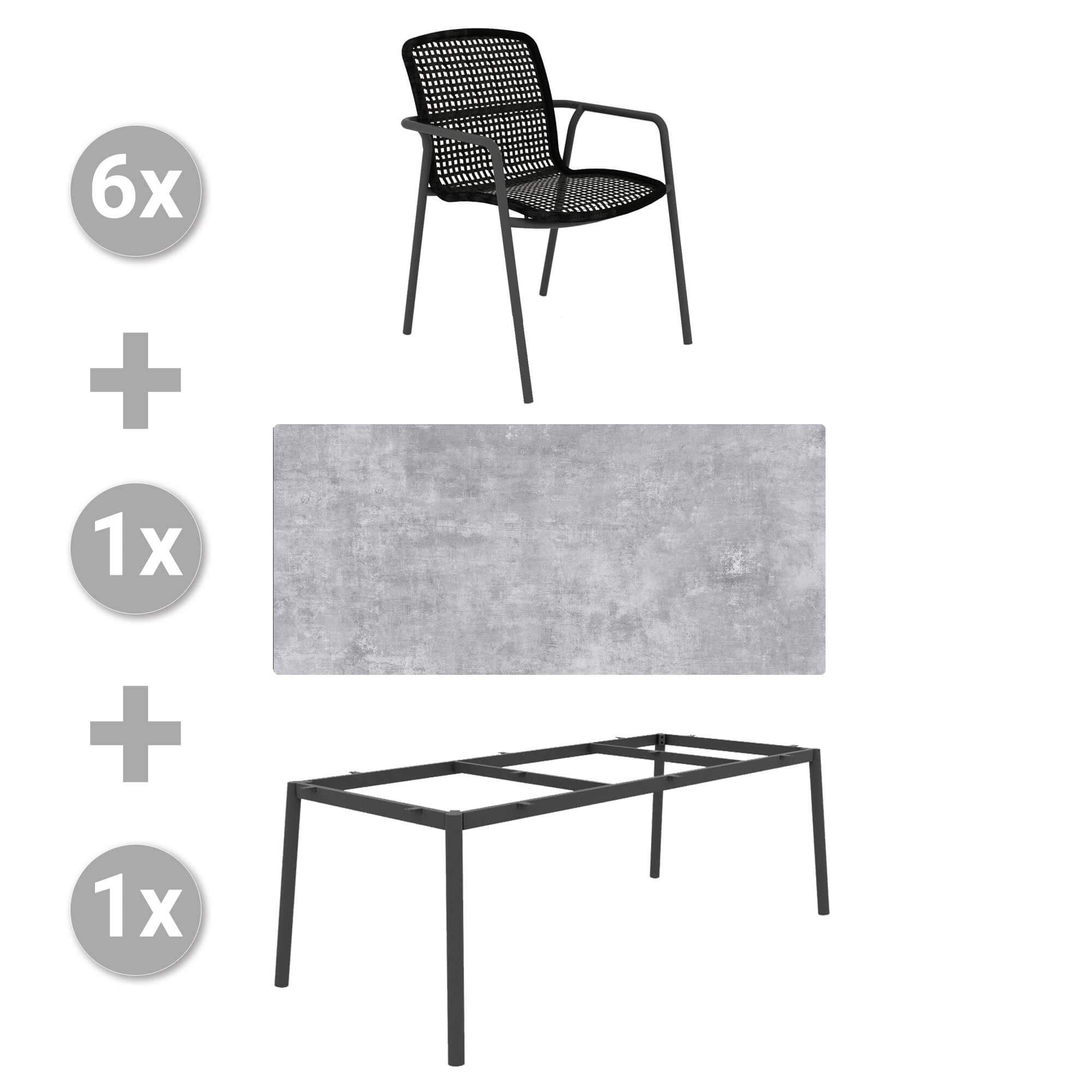 Produktname: Set Durham 220x100cm grau/HPL granit hellgrau + 6 Durham Stapelsessel