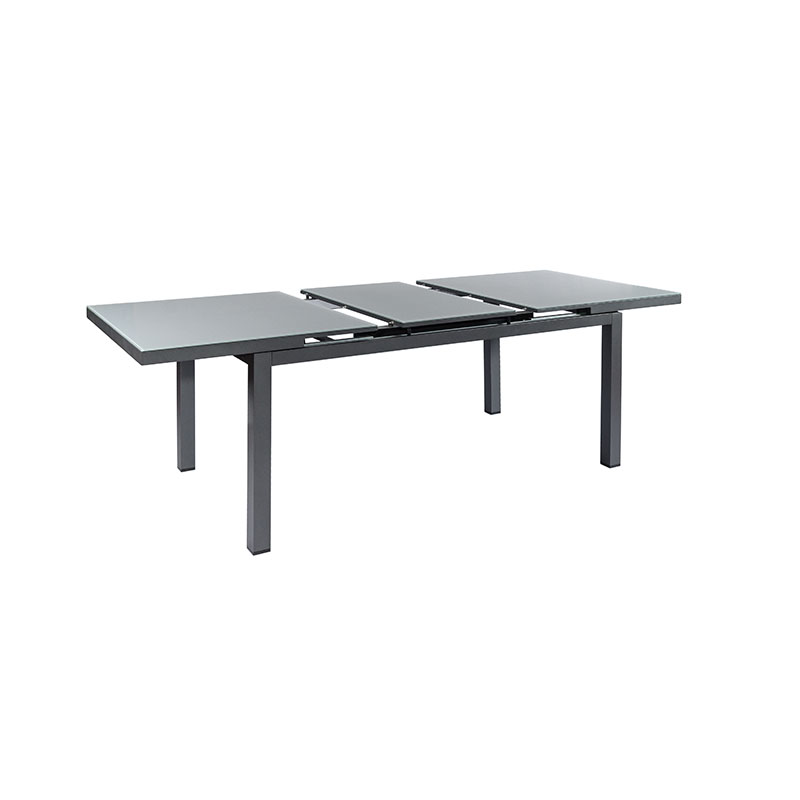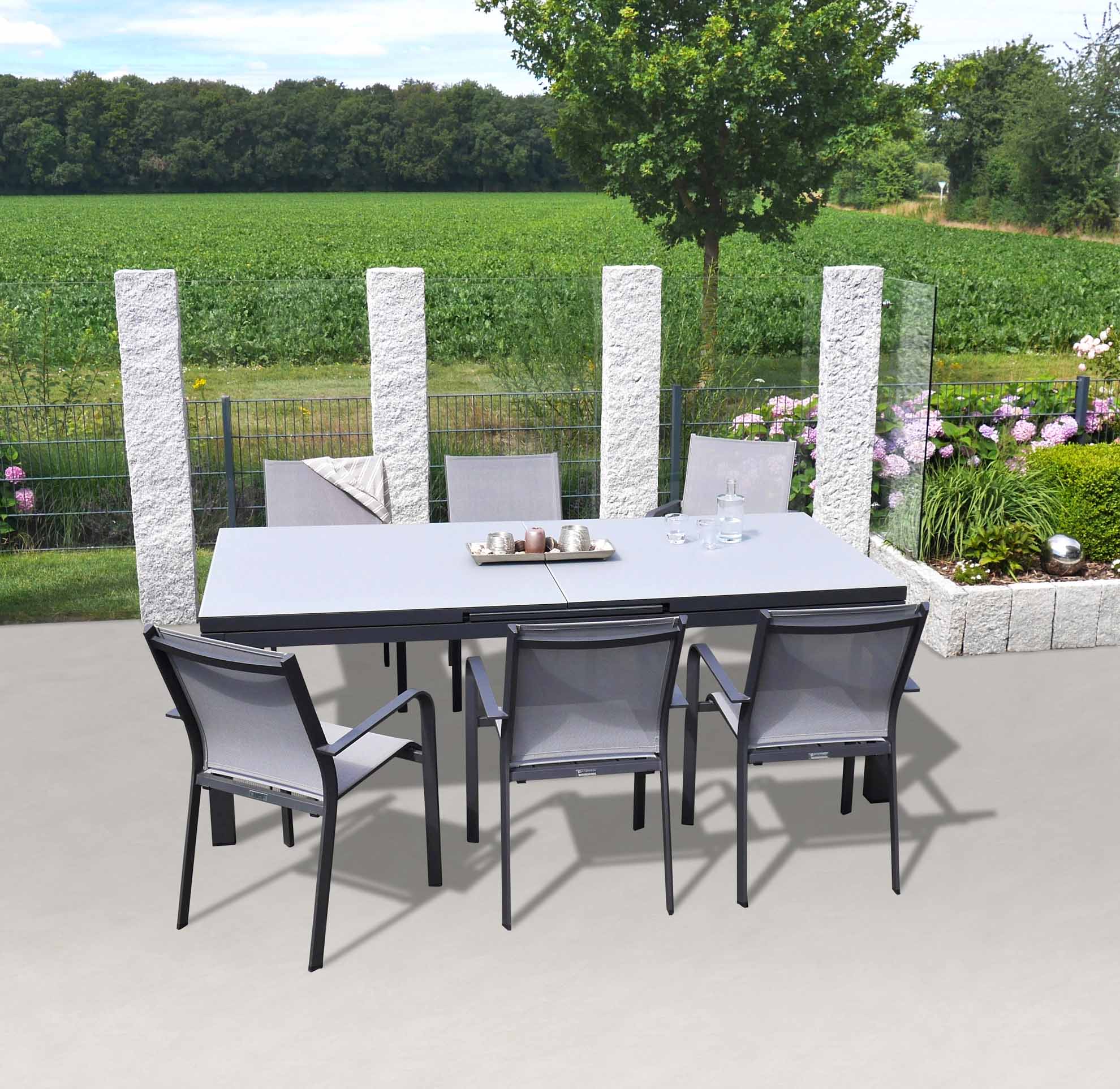 Produktinformationen "Set Gabon 160/210x90cm grau/Glas hellgrau + 6 Dransy Stapelsessel"