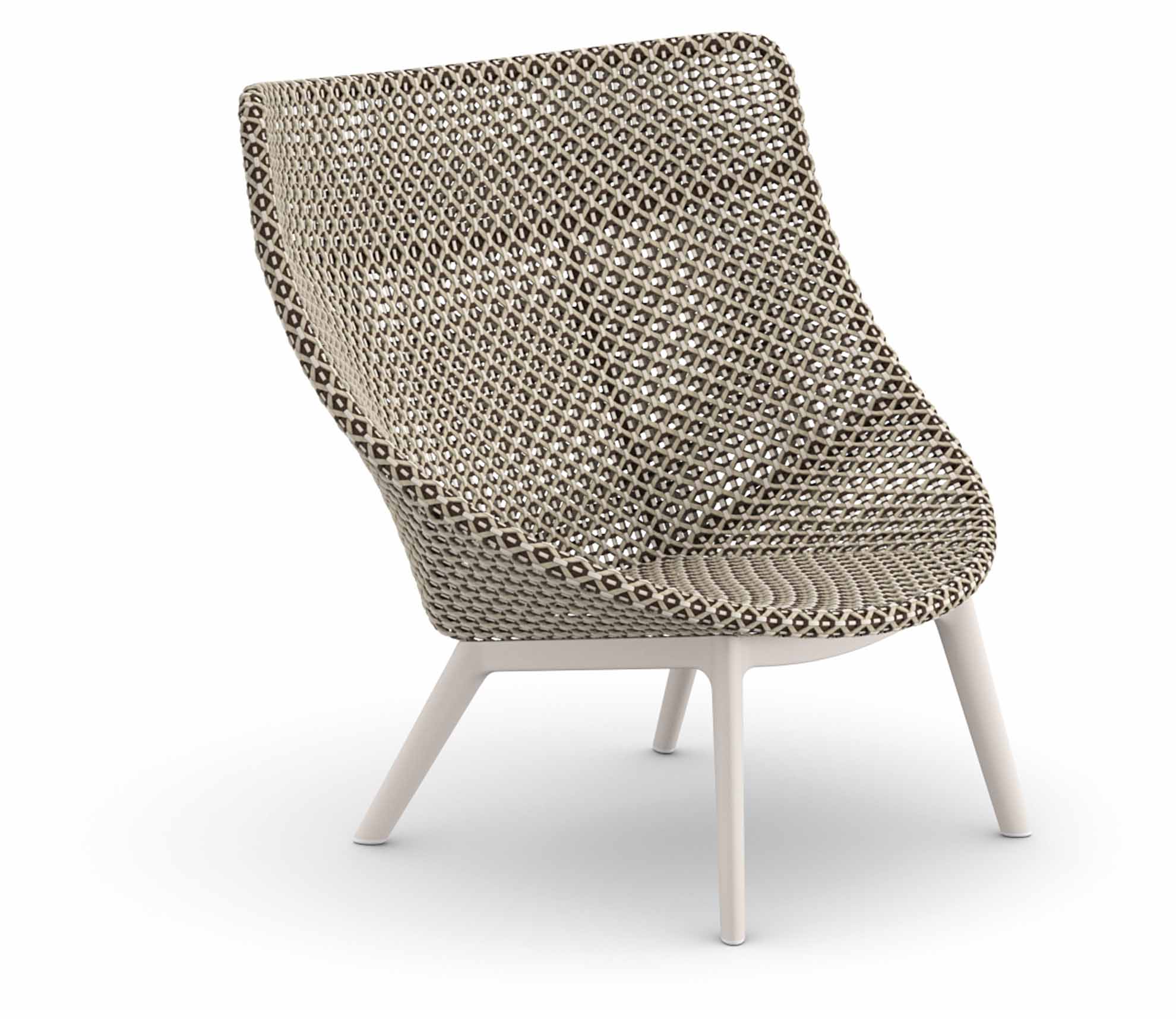 - 1x Mbrace Hochlehner in pepper Geflecht und einem Aluminium-Untergestell in der Farbe lipari.