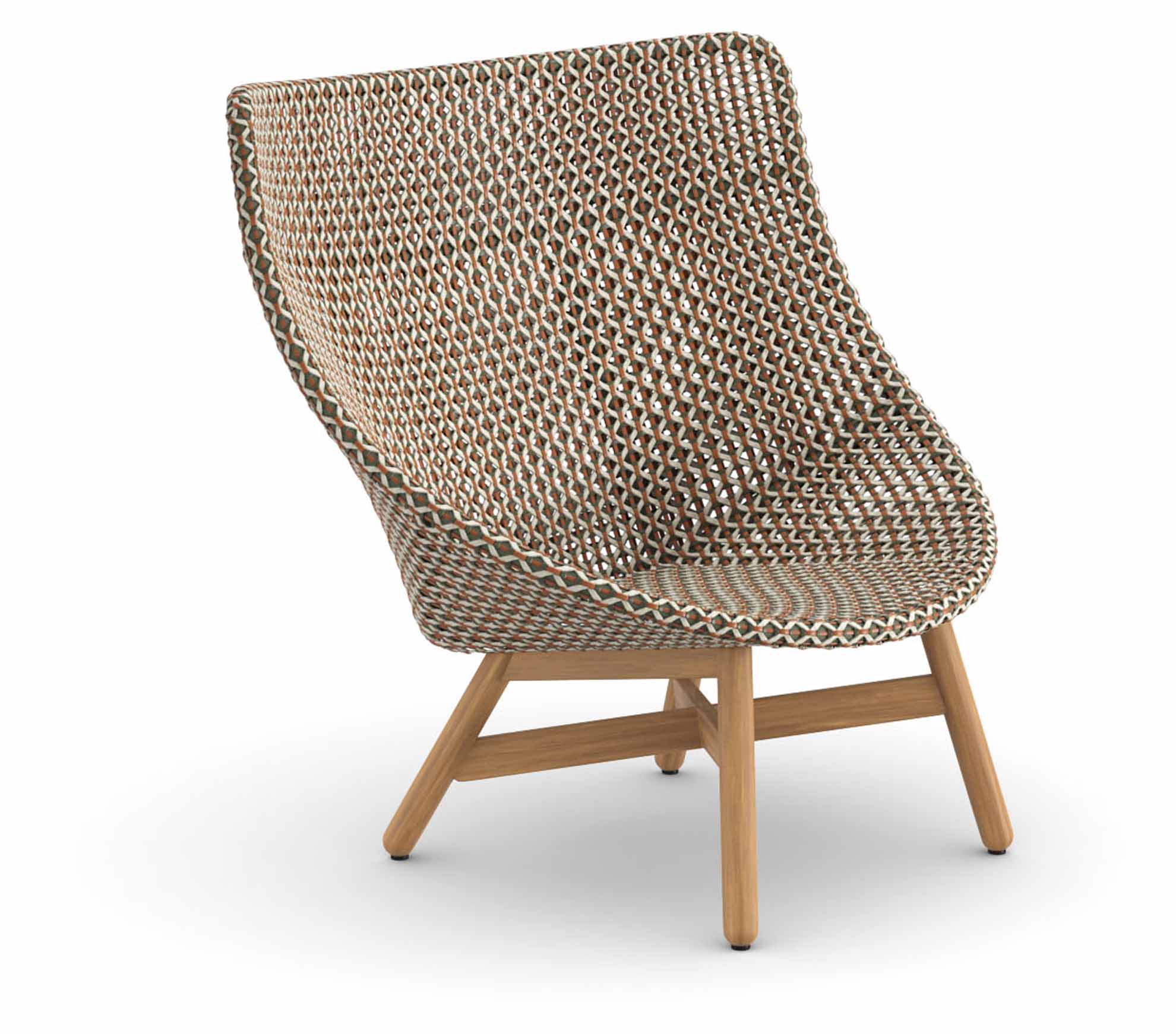 - 1x Mbrace Hochlehner, Geflecht chestnut mit Untergestell aus Teakholz.