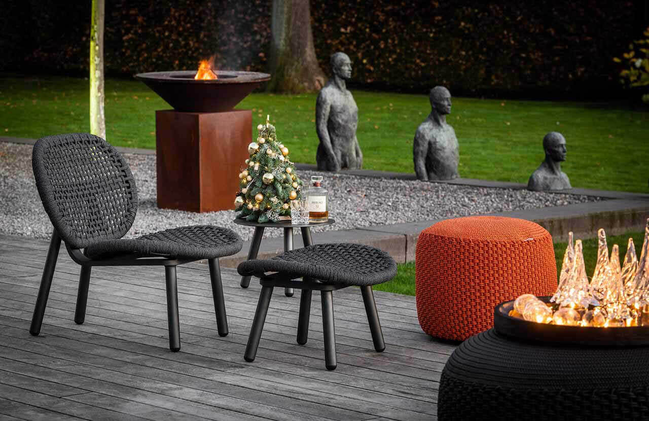 Skate bricht die Regeln! Der Sessel und Hocker bildet einen wunderschönen Rückzugsort zum Verweilen und Füße hochlegen. Oder kombinieren Sie Skate mit Ecken und Kanten und lassen die Kontraste wirken. Die unverwüstlichen Aluminium Gestelle, mit samtweicher Rope geflochten, sind absolut wetterfest. Um diese Serie ganz exklusiv nach den jeweiligen Wünschen ausstatten zu können, bieten wir für die dazugehörigen Kissen eine große Auswahl an Stoff-Kissenfarben an. Das ermöglicht zahlreiche und außergewöhnliche Kombiationsmöglichkeiten für den ganz persönlichen Geschmack.