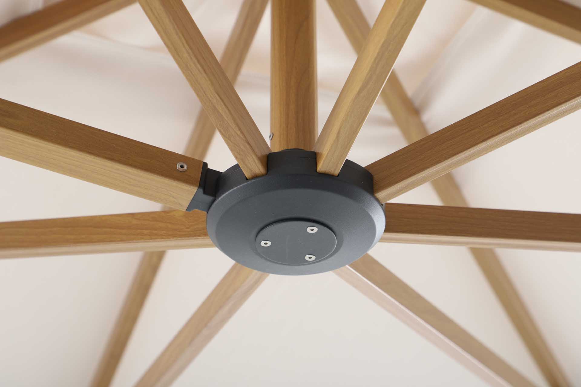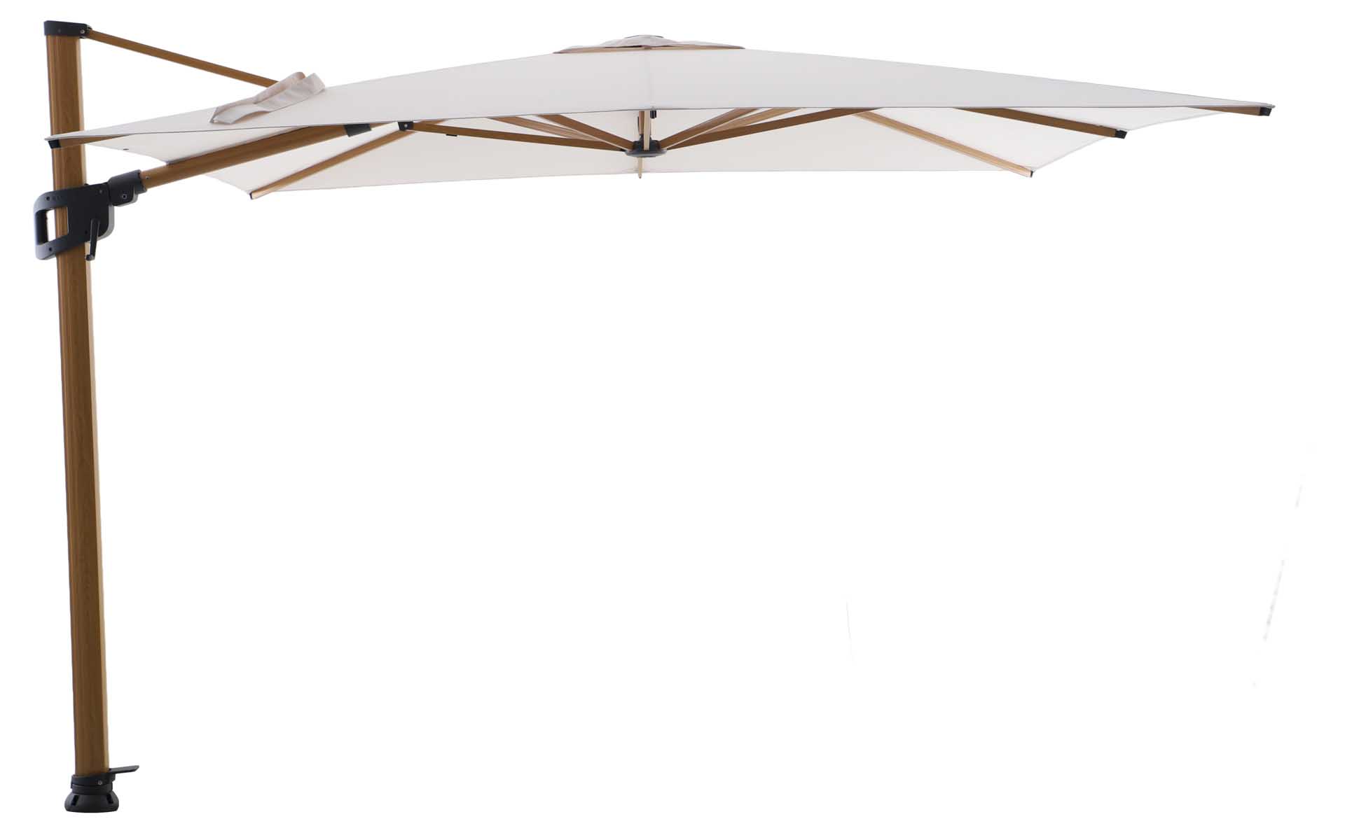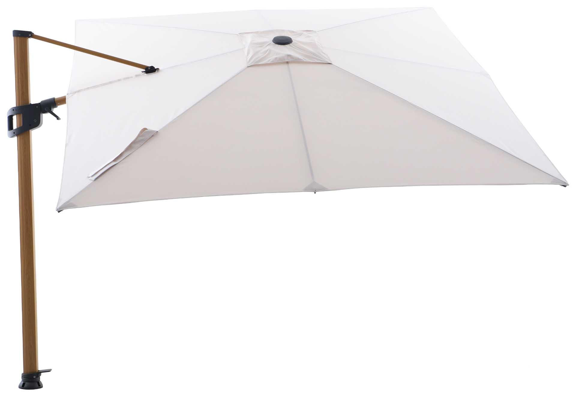Produktname: Solara Luxe Freiarmschirm 300x300cm, teaklook/basalt