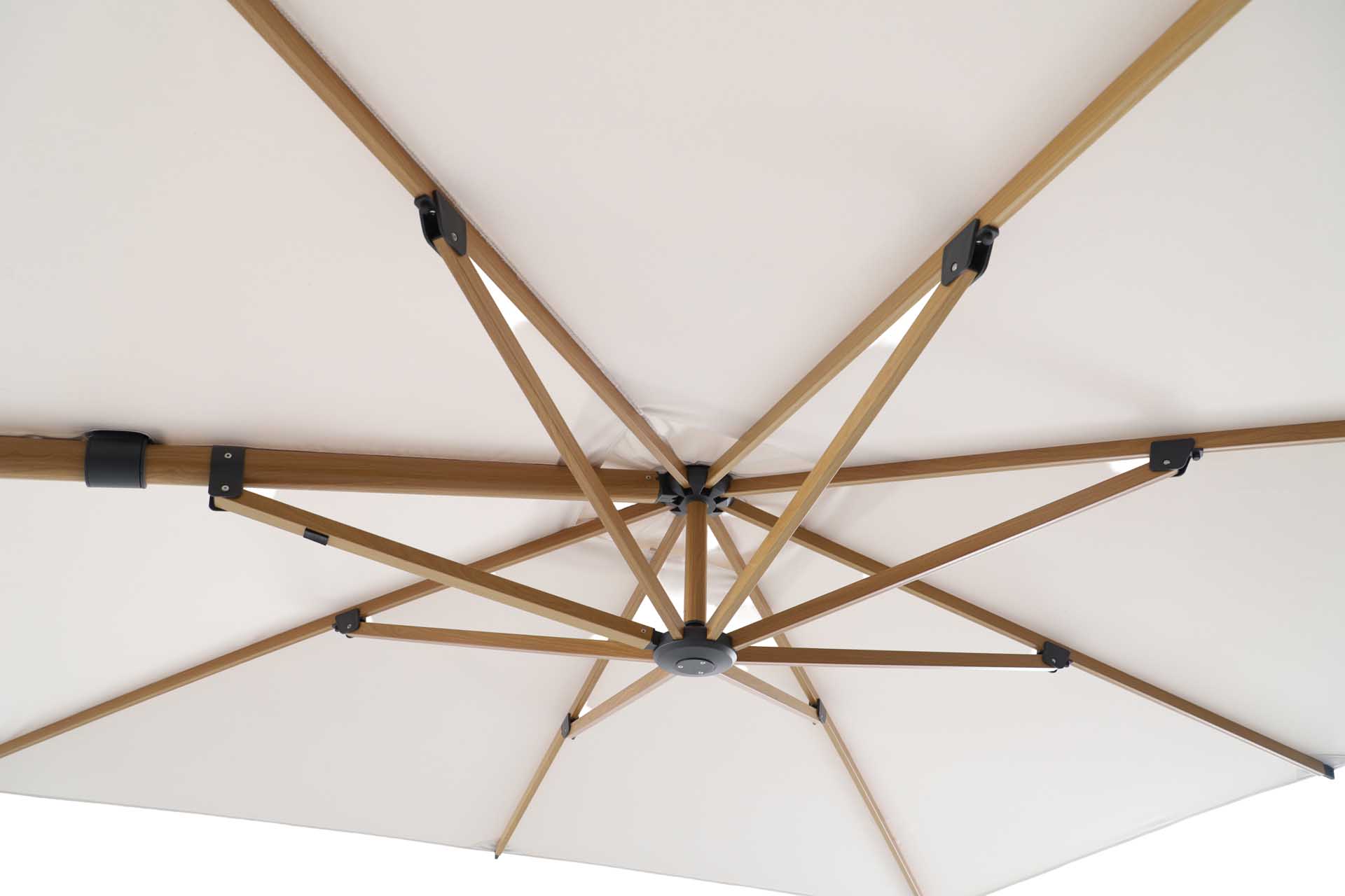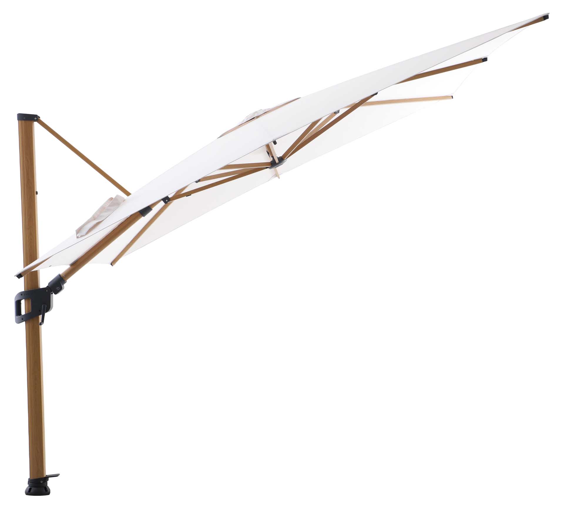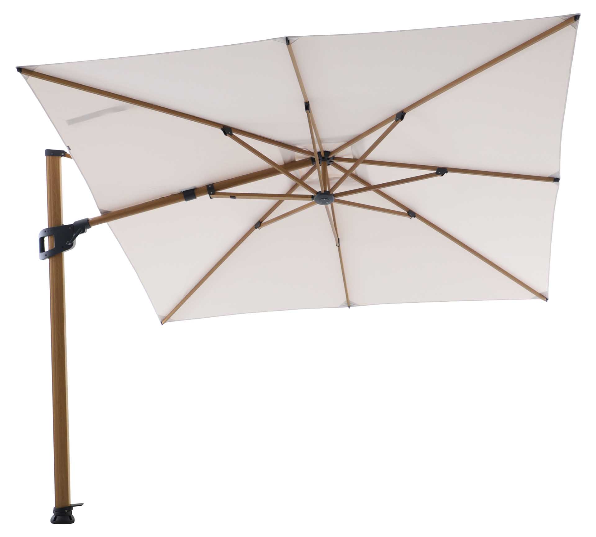 Produktname: Solara Luxe Freiarmschirm 300x300cm, teaklook/basalt